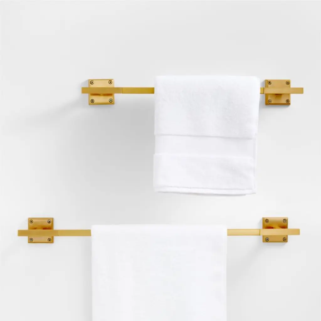 Square Edge Brushed Brass Bath Towel Bar 18"