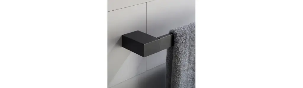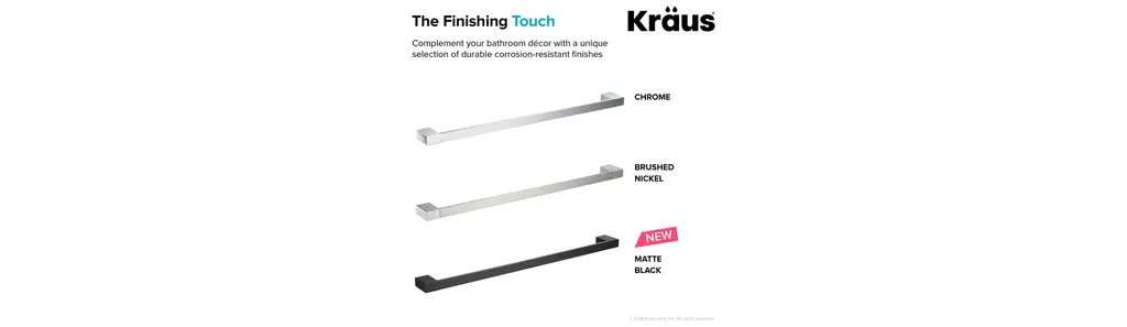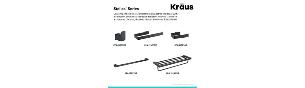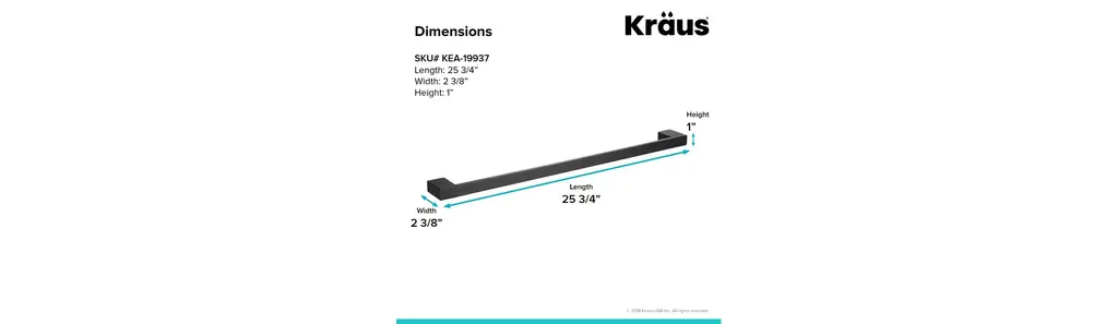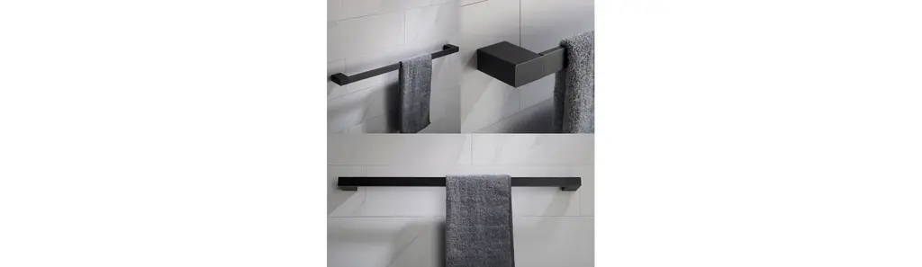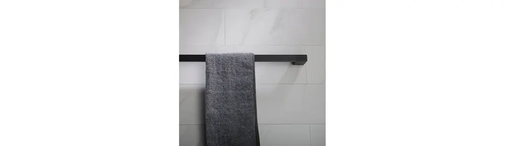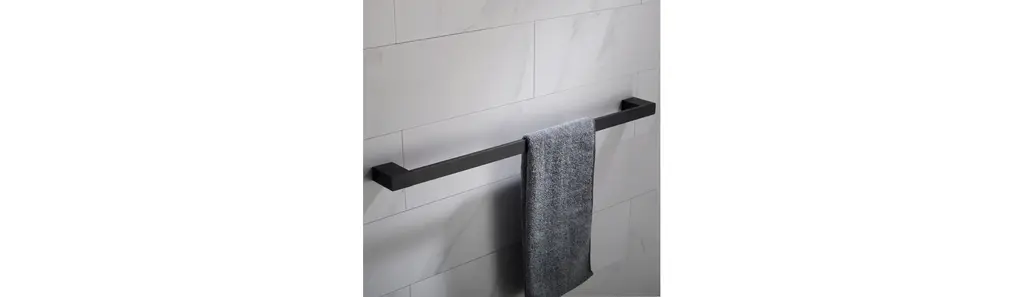 The Stelios bathroom accessory collection features geometric forms with tight angles that add a contemporary edge to any bathroom decor. Solid brass construction offers maximum durability, with a range of finish options for a customized look.Model: KEA-19937MBProduct: Bathroom 24" Towel BarCollection: SteliosMaterial: Solid BrassColor/Finish: Matte BlackCorrosion Resistant finishInstallation-Ready: Comes in one piece with no assembly required, installation template and all mounting hardware includedModern Bathroom Style: Streamlined design with concealed screws and rounded edges to avoid scratchingDimensions: 25 3/16" L x 2 3/8" W x 1" H; Holds up to 22 lbs.Limited Lifetime Warranty