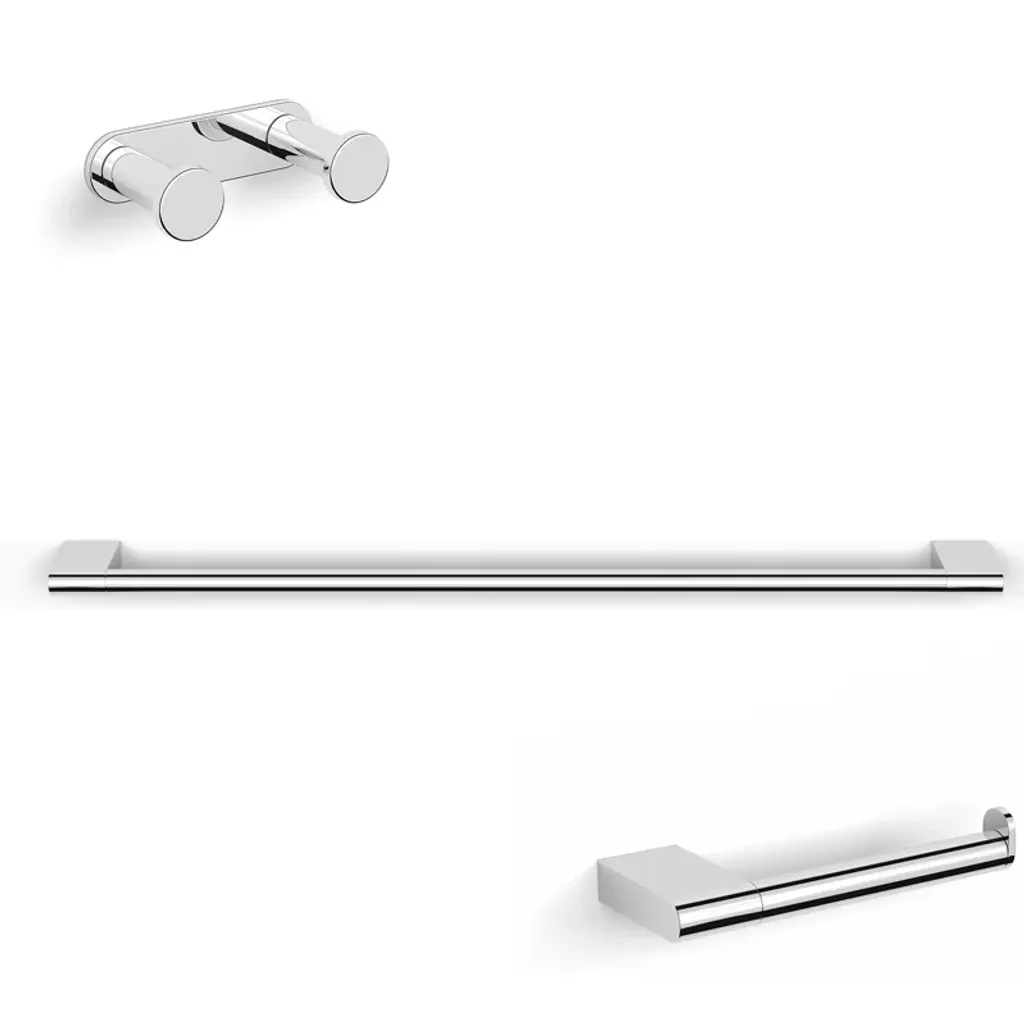 The AXOR Universal SoftSquare Accessories range reflects the brand's passion for highly functional and expertly crafted design objects for the bathroom. Combinable with a wide variety of AXOR fittings and shower products, the range provides the basis for a uniform design language across the entire bathroom. The accessories include a wall mirror, a shaving mirror, towel hooks, one and two-armed towel rails, a towel rack, a tissue box, paper roll holder, toilet brush holder, a waste bin and a shower shelf. All accessories are available in Chrome, Matte Black, and Brushed Nickel.