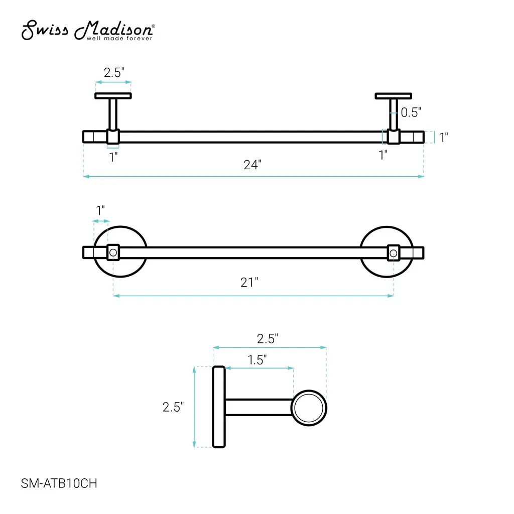 Verre 24" Acrylic Towel Bar In Chrome - Chrome