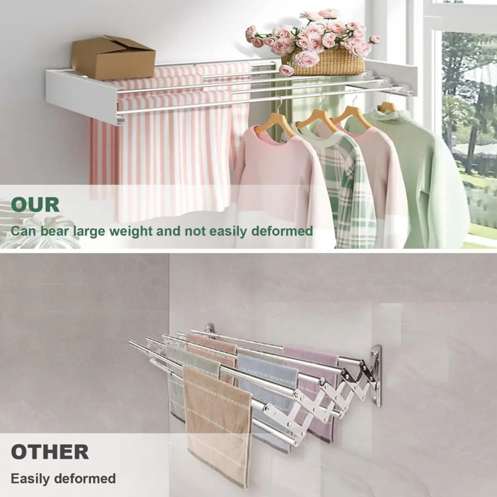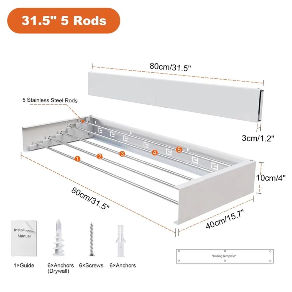 Wall-mounted Dry Racks, 80cm 5 Poles Retractable Clothes Drying Rack With Towel Rails,