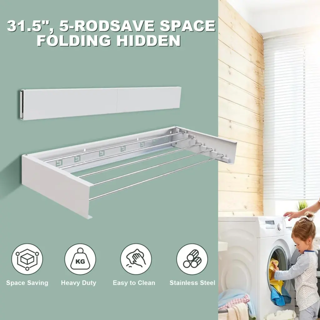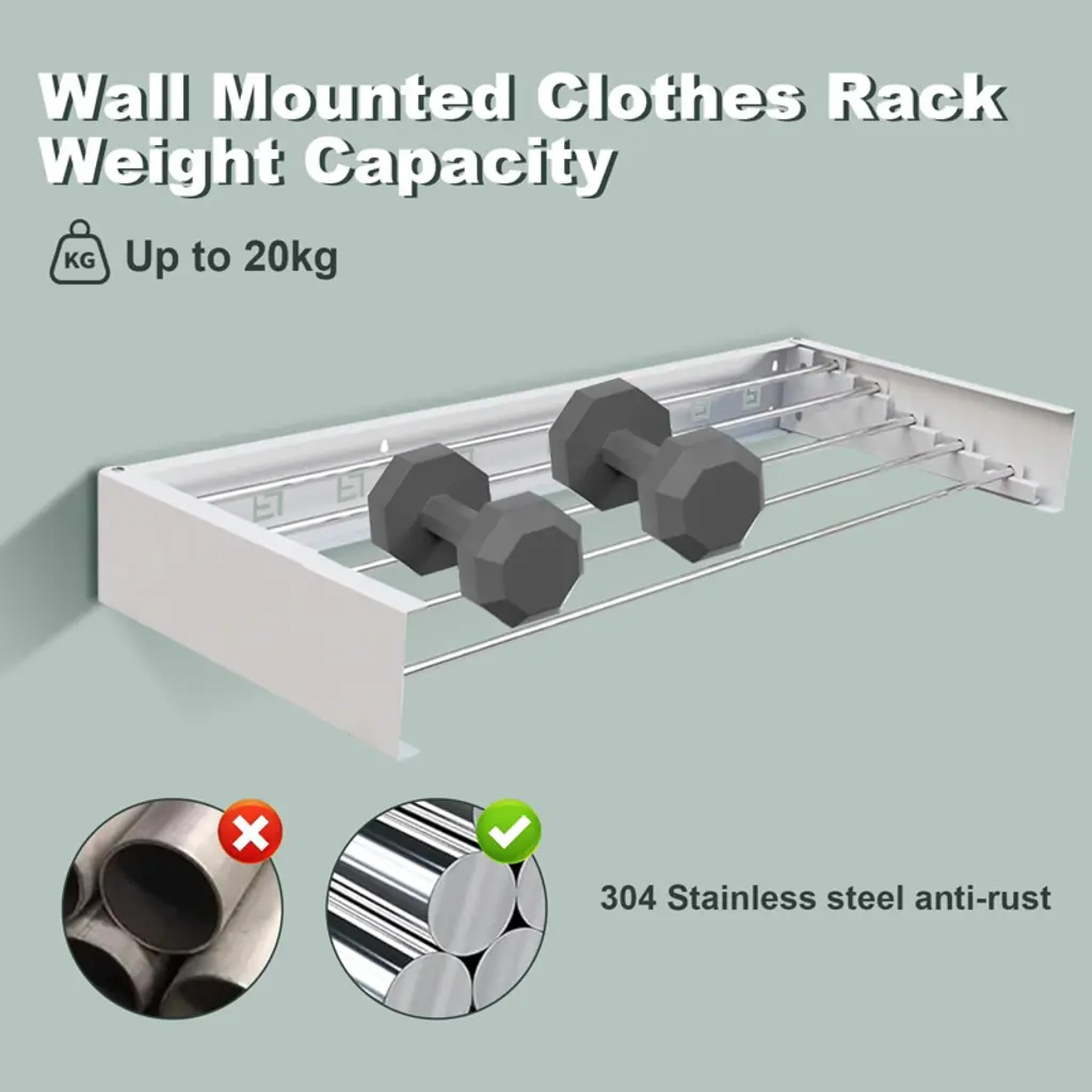 Wall-Mounted Dry Racks, 80cm 5 Poles Retractable Clothes Drying Rack with Towel Rails, 20kg Capacity Space Saving Invisible Dryer Rack Clothing for Home Balcony