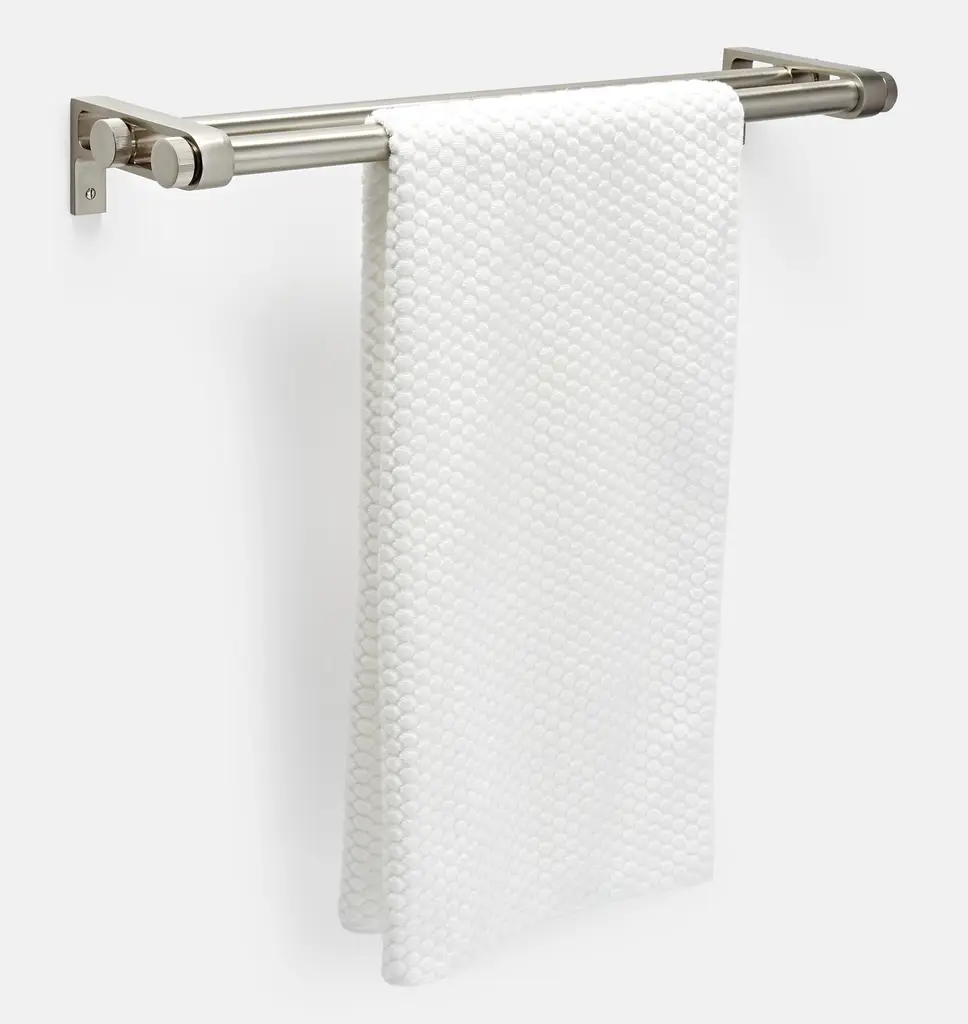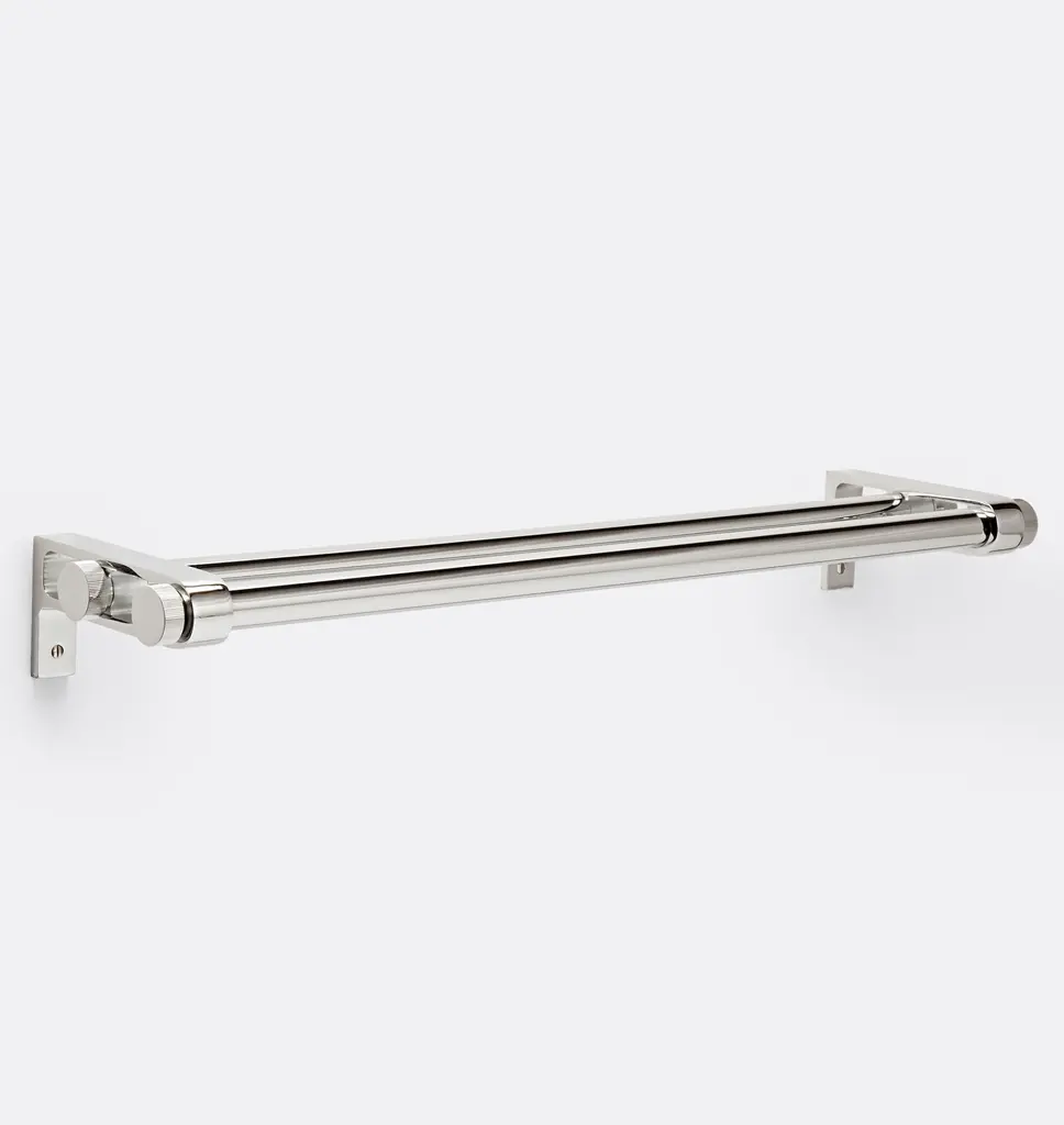 A Rejuvenation exclusive design, our West Slope Double Towel Bar is as simple as it is stunning. Featuring clean lines and a beautiful profile, it adds polished detail to any bath. Inspired by the simple lines and functionality of Northwest Modern architect John Yeon's cabinet and door hardware, our West Slope hardware collection was designed in-house and offers sturdy dimensions, unadorned geometry, and timeless style to homes of any era. Details You'll Appreciate Inspired by Northwest Modern architect John Yeon Exclusively designed and created in-house with solid cast brass Product Specifications Brass Mounting hardware included Imported