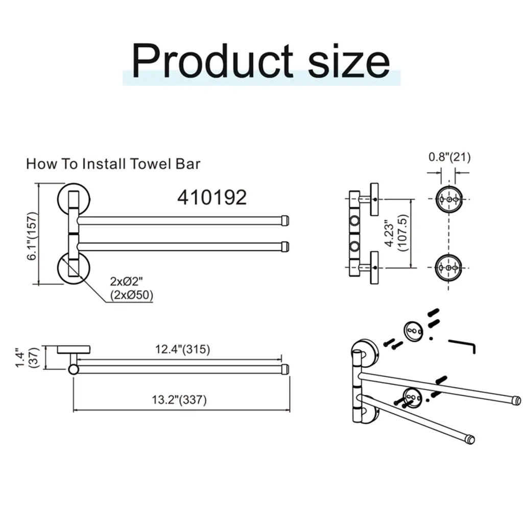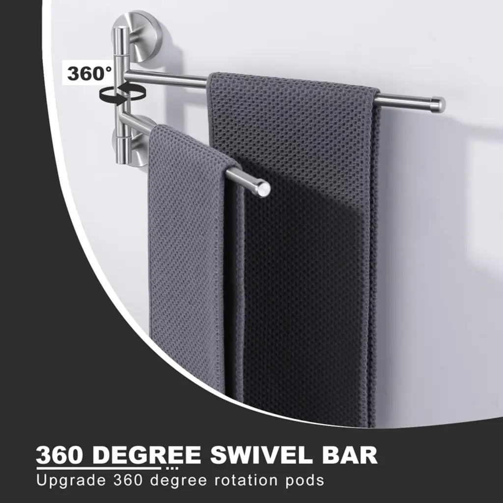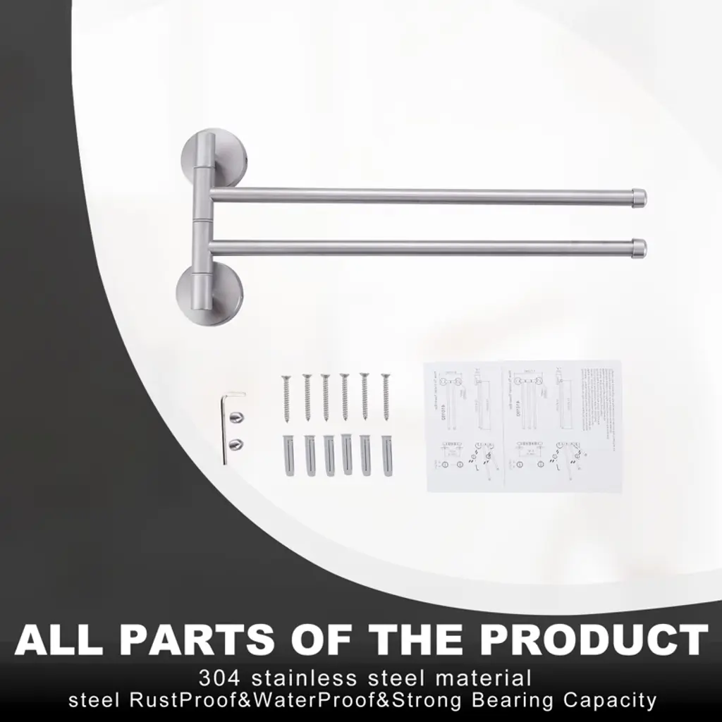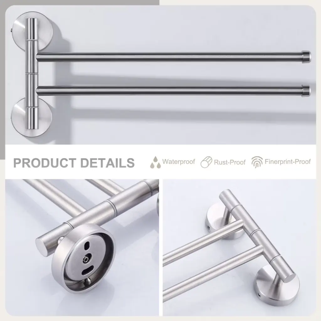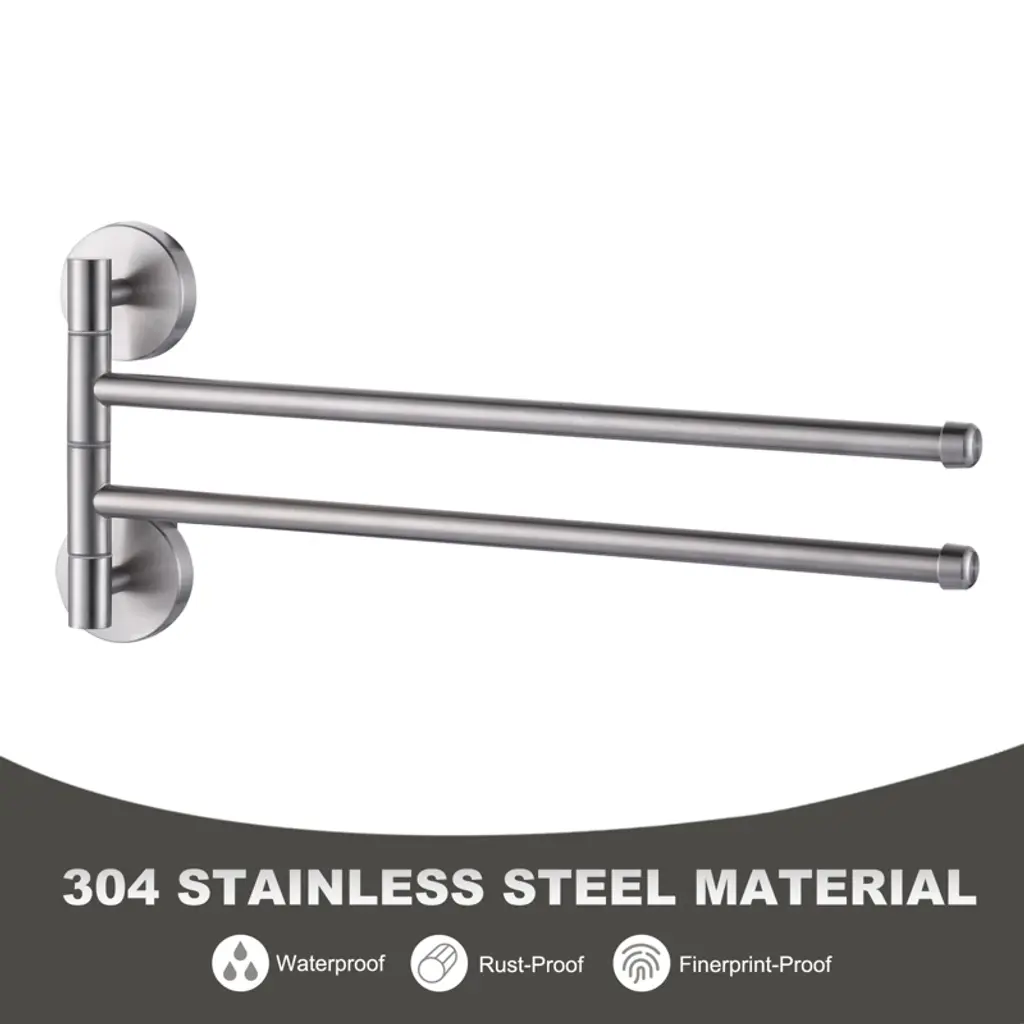 Elegantly designed, this double towel bar is a must-have decorative and practical item for the modern bathroom. It is made of high quality stainless steel with brushed nickel finish, showing understated luxury texture, suitable for various bathroom styles. Rounded corners and smooth surfaces, comfortable and safe to touch, adding a smooth and elegant aesthetic. The 2-arm design expands hanging space and makes it easy to organize towels and other bathroom supplies. The stainless steel material has excellent rust and waterproof performance, effectively resisting bathroom water vapor and keeping the product fresh for a long time. Fine waterproof treatment ensures stability and durability in humid environments.