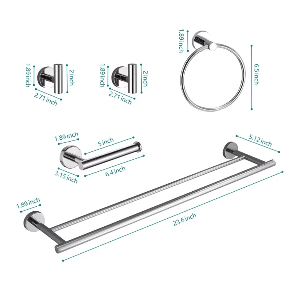 The 5-piece bathroom hardware set has a simple and stylish appearance, which can easily meet your hanging storage needs and make your bathroom look tidier and more comfortable. Also suitable for bathrooms, outdoor showers and remodeling bathroom wardrobes, kitchen cabinets, laundry rooms, living rooms, etc.
