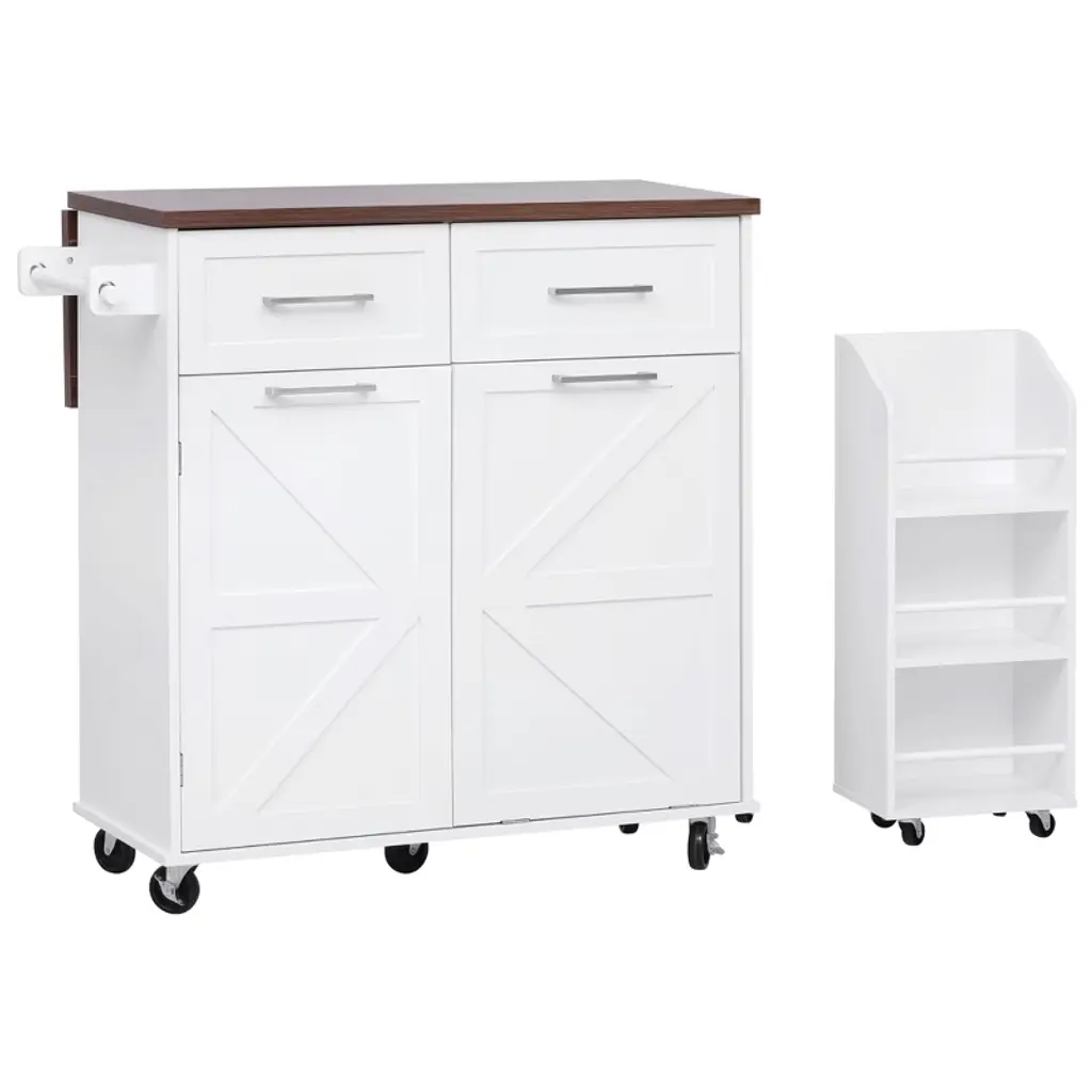 Bella Depot 47.2" Farmhouse Kitchen Island With Drop Leaf, Rolling Kitchen Cart On Wheels With Two Drawers, Towel Rack, Side Racks