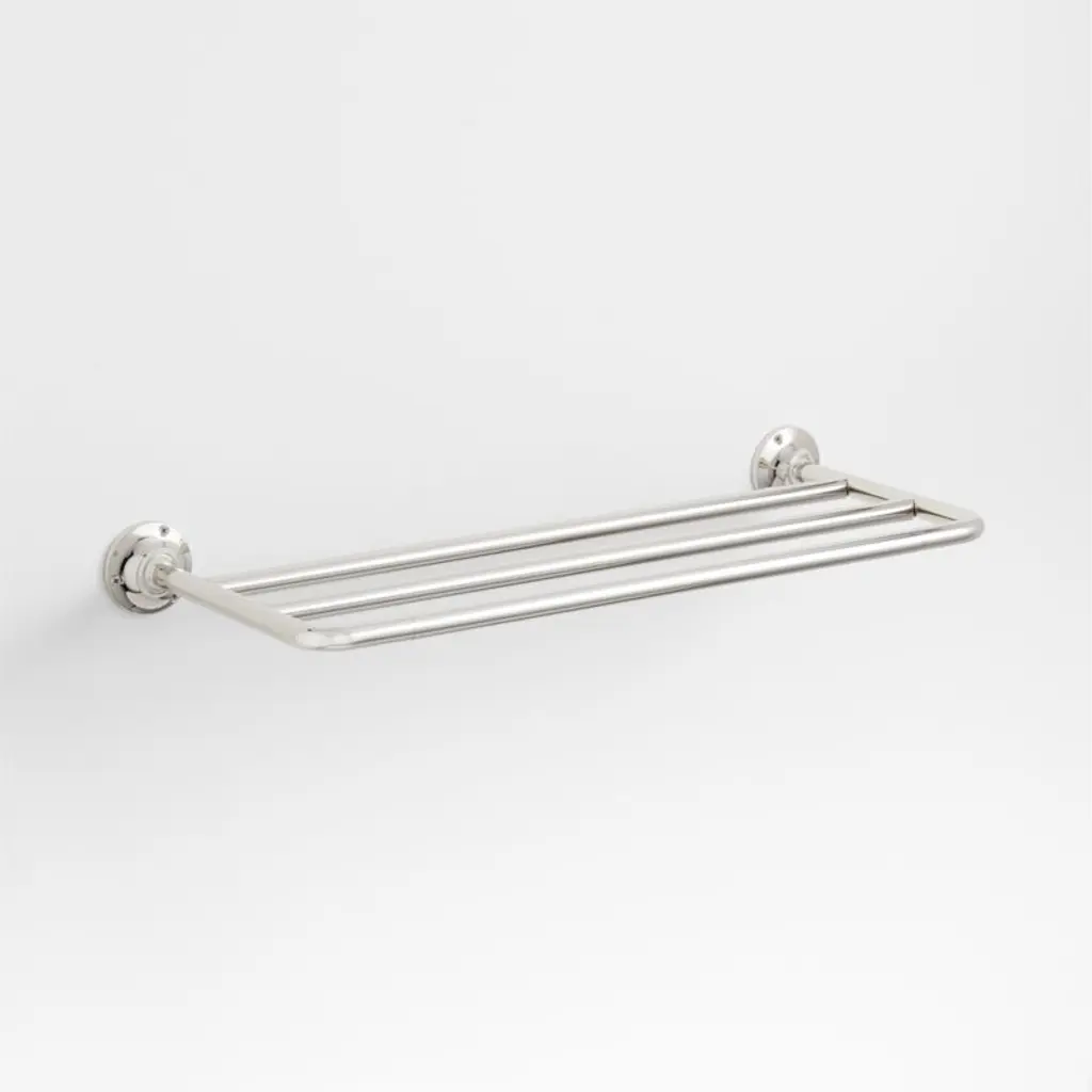 Sometimes it's the small things that pull a room together. That's why we've designed a hardware collection with modern silhouettes, clean lines and a touch of tradition to give your bathroom that perfect finishing touch. We named this triple towel rack Classic for a reasonthree slender rods line up to hold multiple towels, curving into round, tapered wall plates for a timeless look. Crafted of brass with a shiny chrome finish, the wall-mounted towel rack has smooth edges and a slim profile. Hardware is included to make it easy to refresh the look of your powder room or bathroom.
