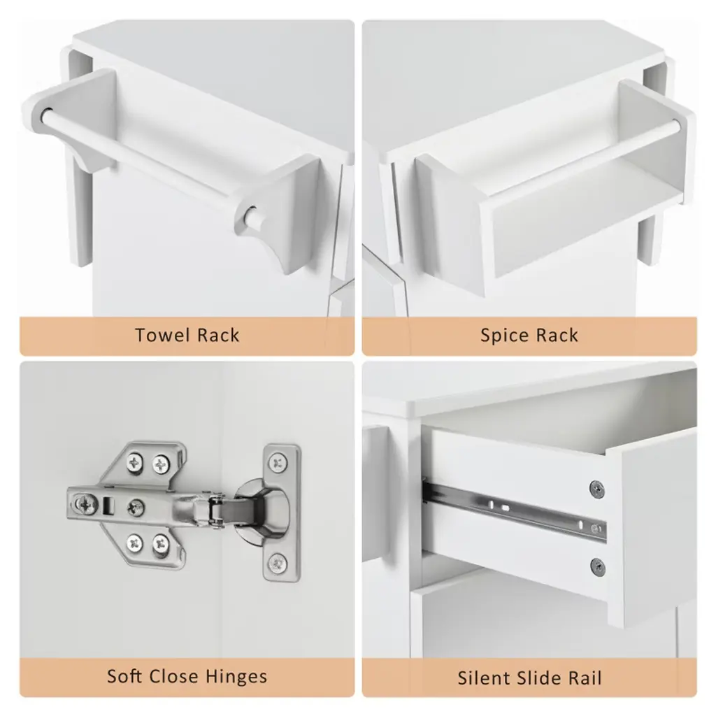 Clihome Kitchen Storage Cart With Spice Rack, Towel Rack, Drop Leaf, Rolling Kitchen Island With Adjustable Shelves And 2 Drawers, White