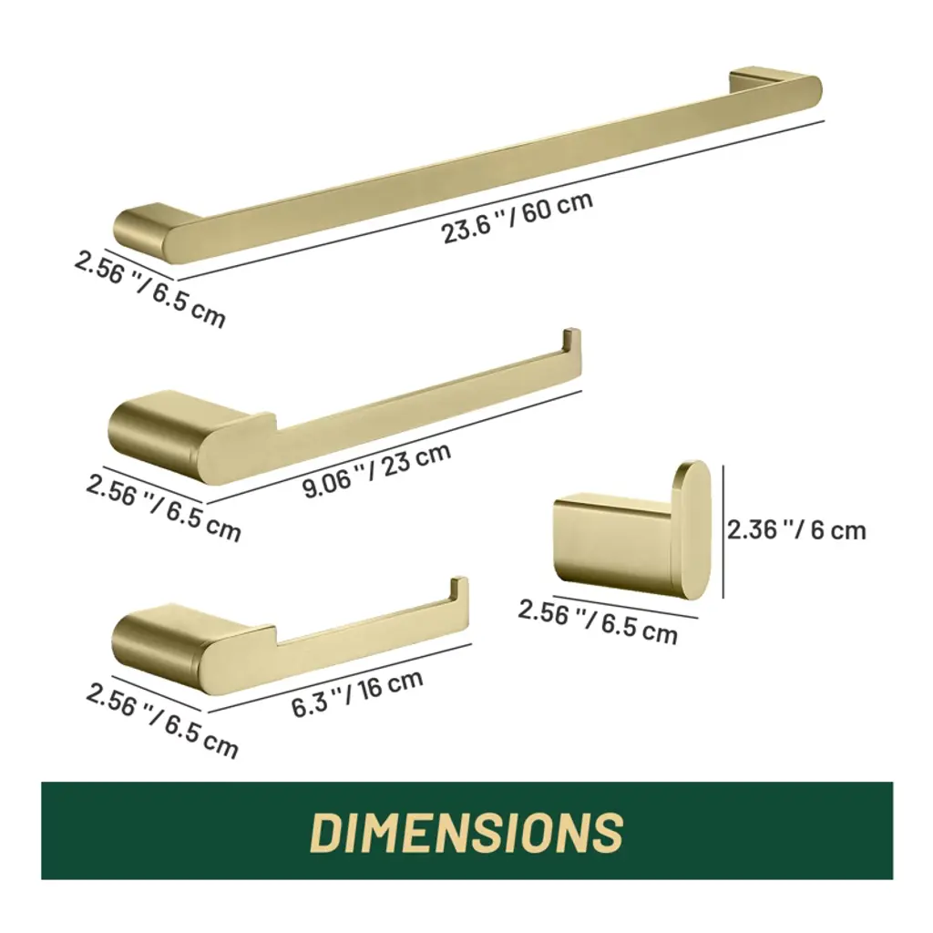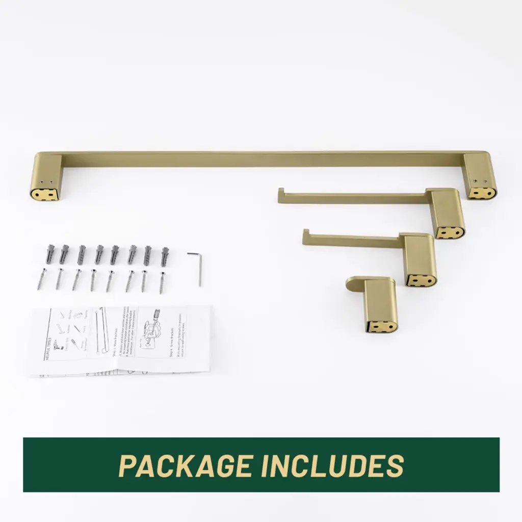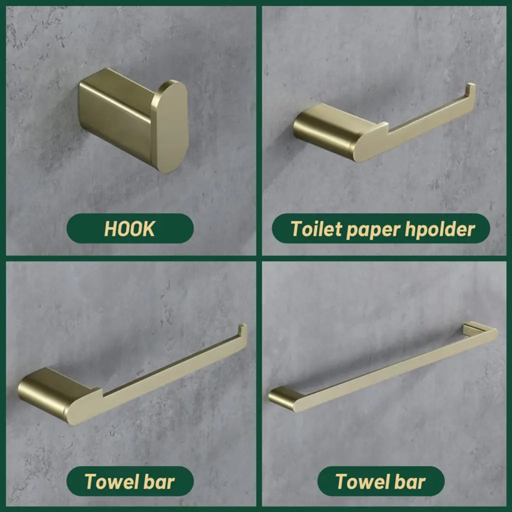 Cobbe Bathroom Hardware 4-piece Set, Brushed Gold Bathroom Accessories Set With Towel Rack, Hand Towel Bar, Towel Hook, Toilet Paper Holder