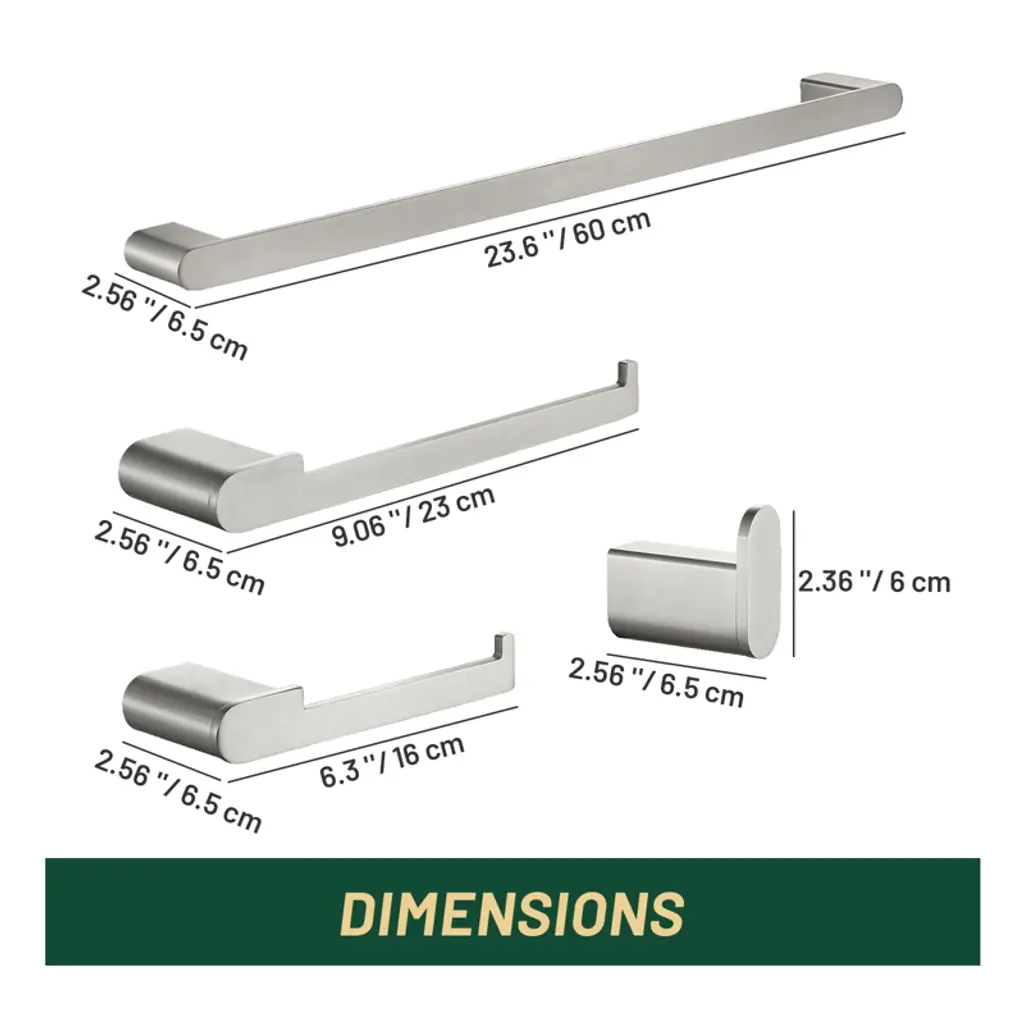 Cobbe Bathroom Hardware 4-piece Set, Brushed Nickel Bathroom Accessories Set With Towel Rack, Hand Towel Bar, Towel Hook, Toilet Paper Holder