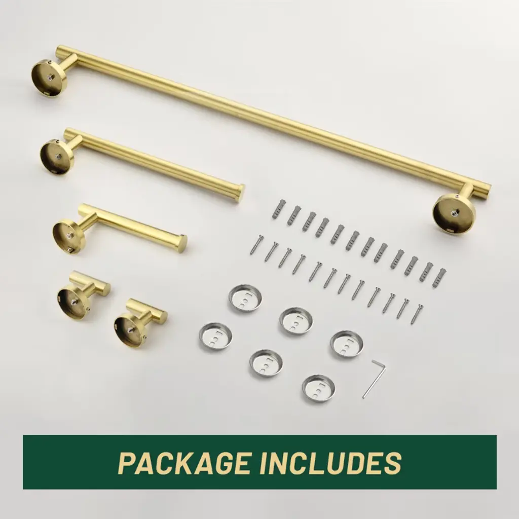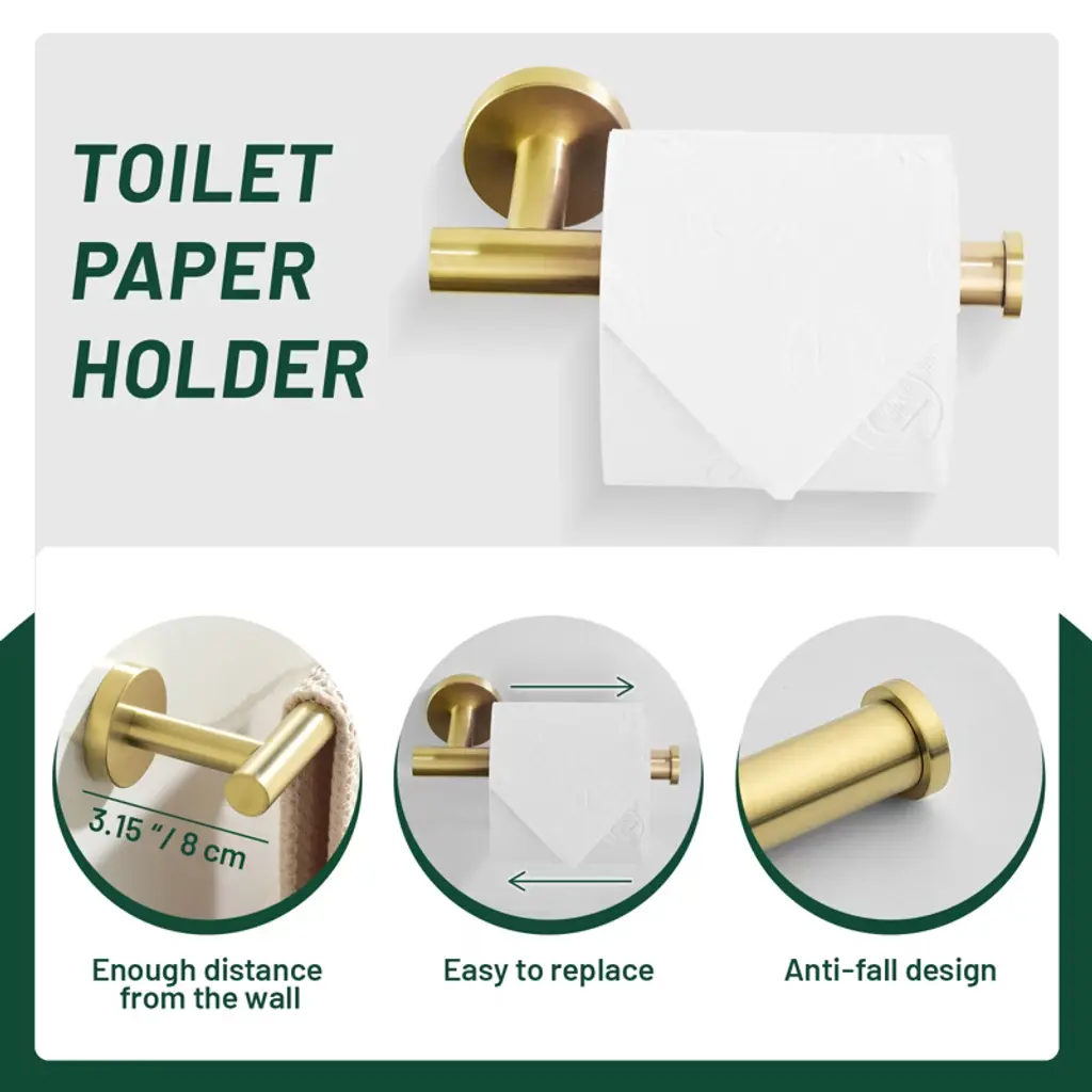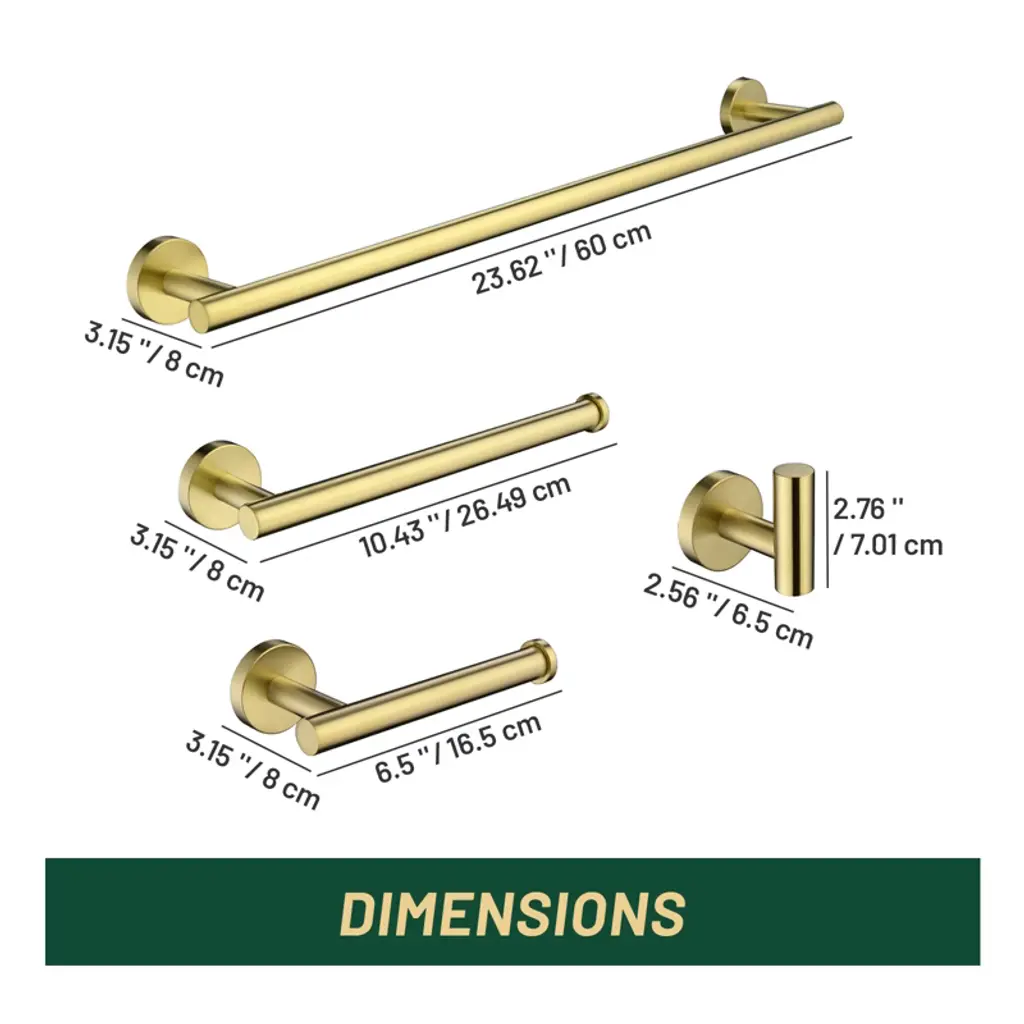 Cobbe Brushed Gold Bathroom Hardware Set With Towel Rack, Hand Towel Bar, 2 Towel/robe Hooks, Toilet Paper Holder Bathroom Accessories Set 5-piece
