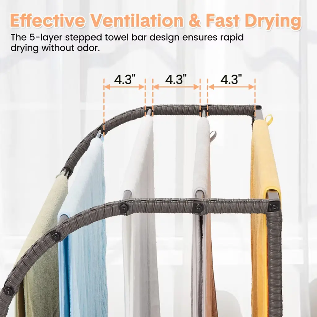 Garvee Towel Rack, 5 Bar Pool Towel Rack With Rattan Base, Outdoor Towel Rack, Storage Organizer With Compartment For Outdoor/indoor