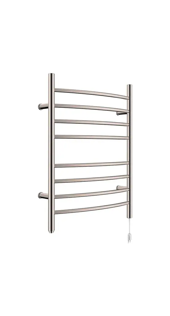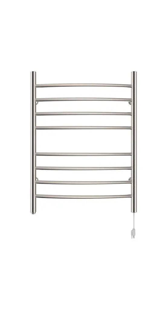 Heatgene Wall Mounted 8 Bar Plug-In Curved Towel Warmer Towel Rack, Brush Polish