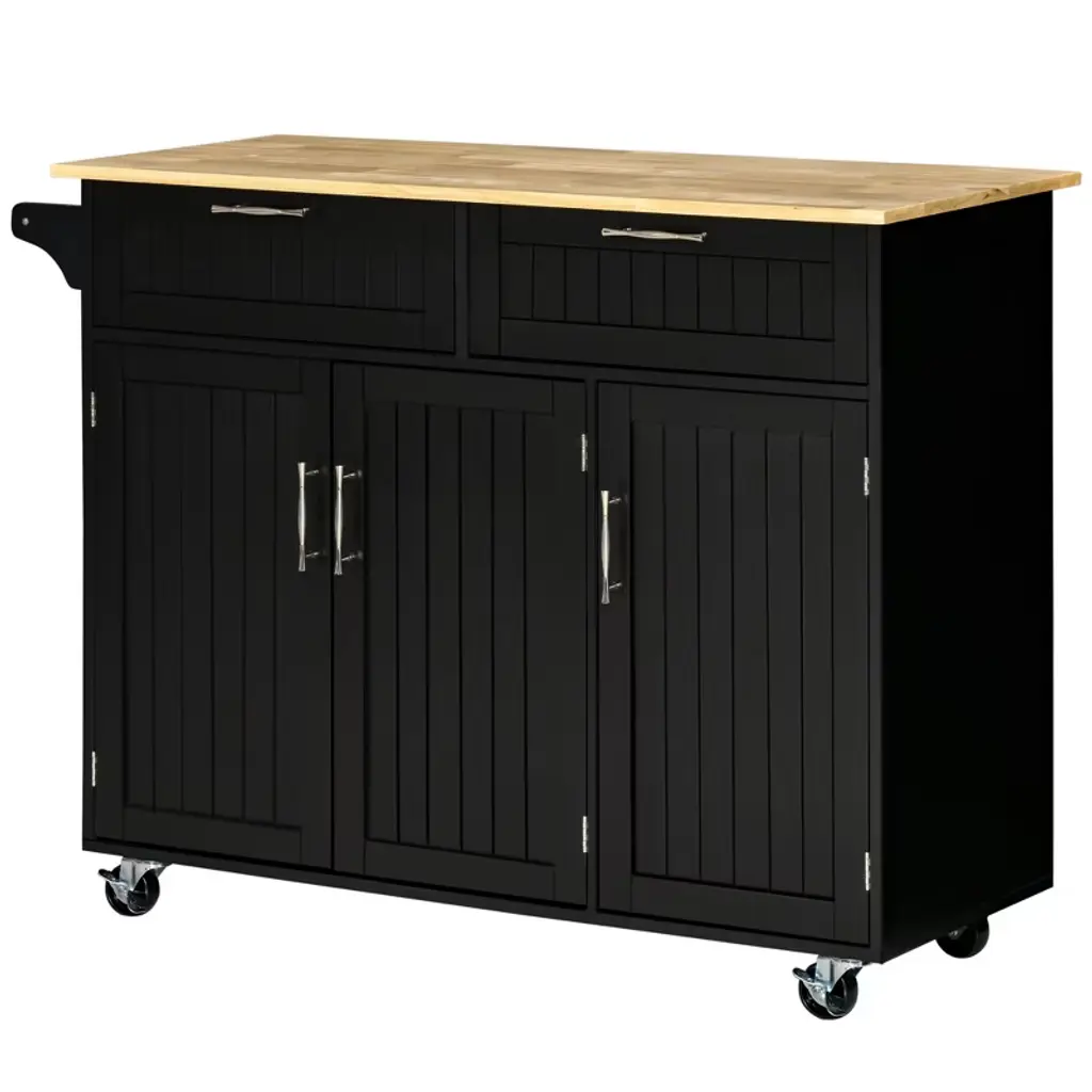 Homcom Modern Kitchen Island Cart On Wheels With Storage Drawers, Rolling Utility Cart With Adjustable Shelves, Cabinets And Towel Rack, Black