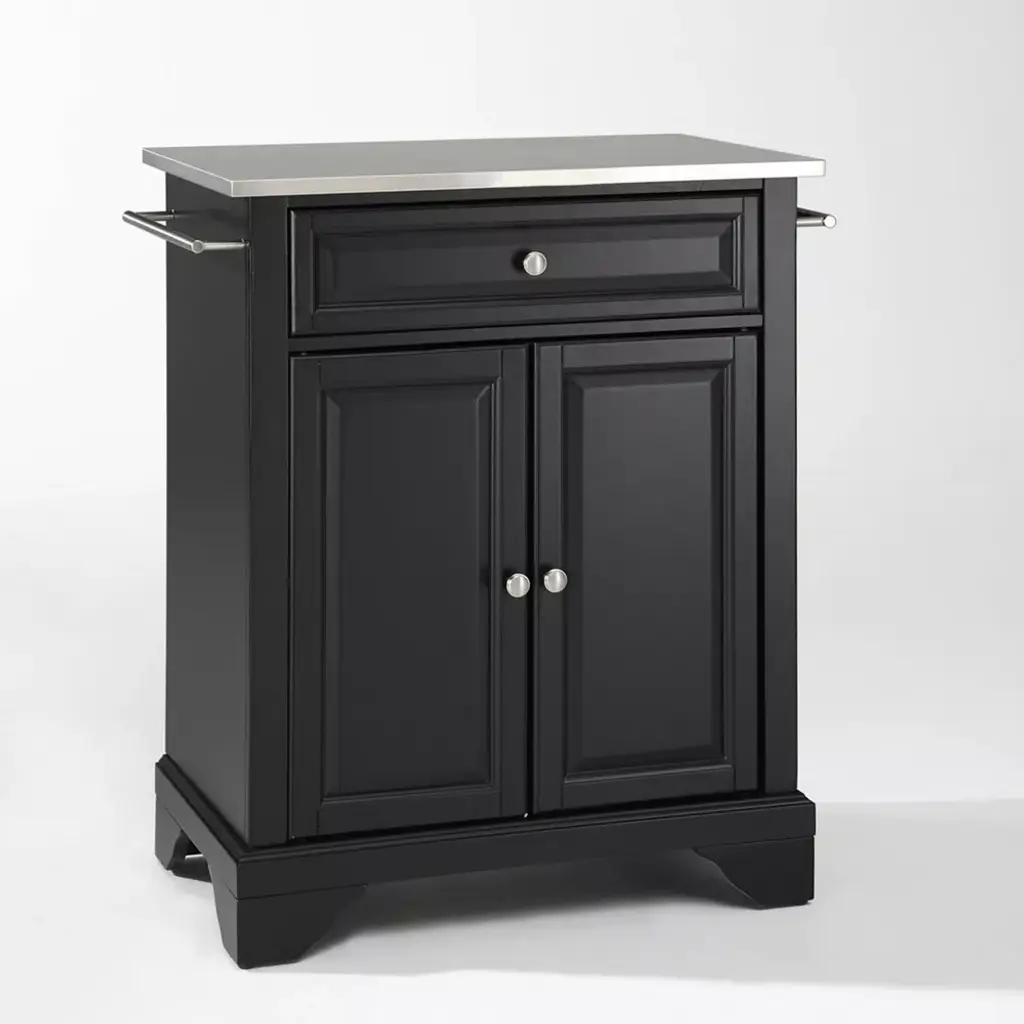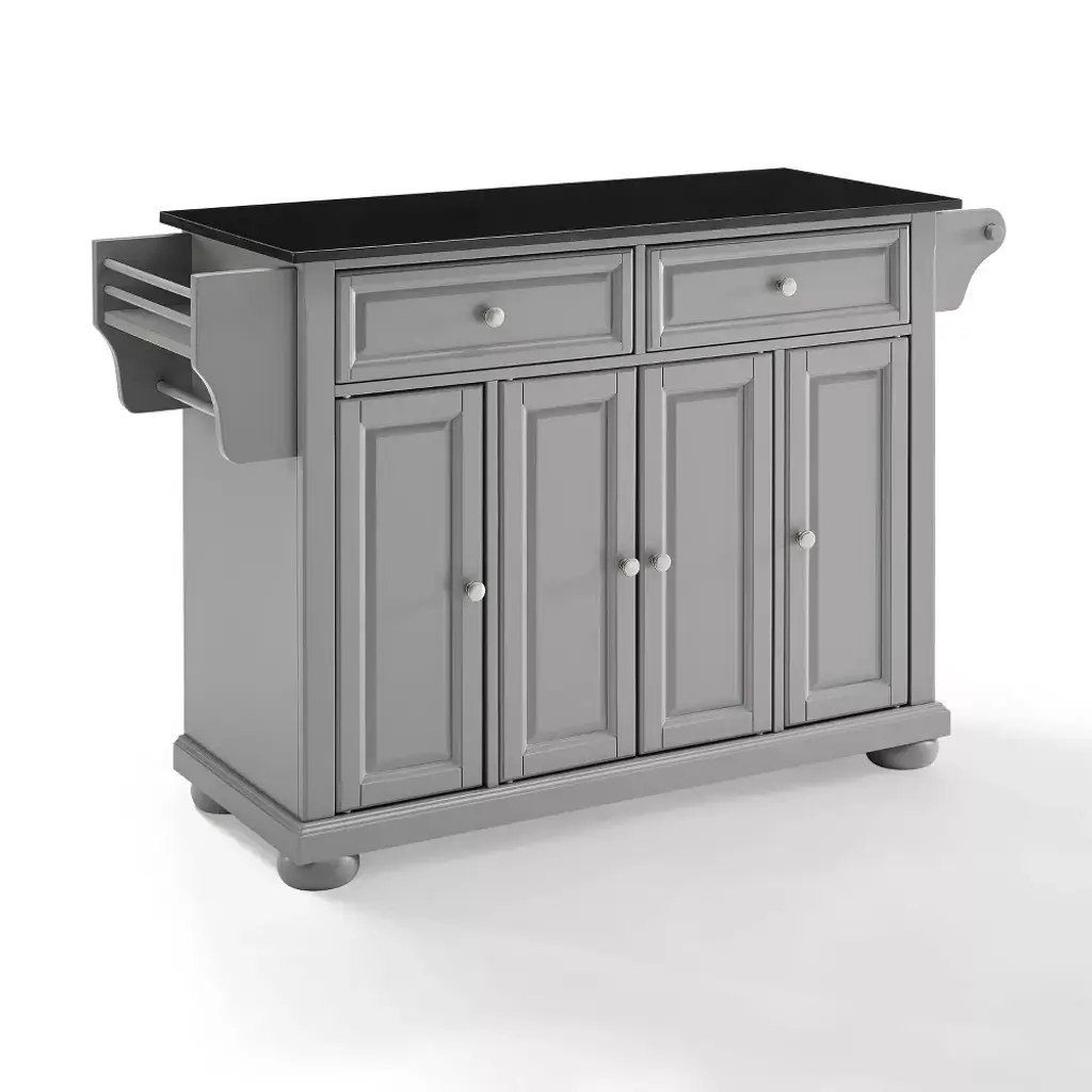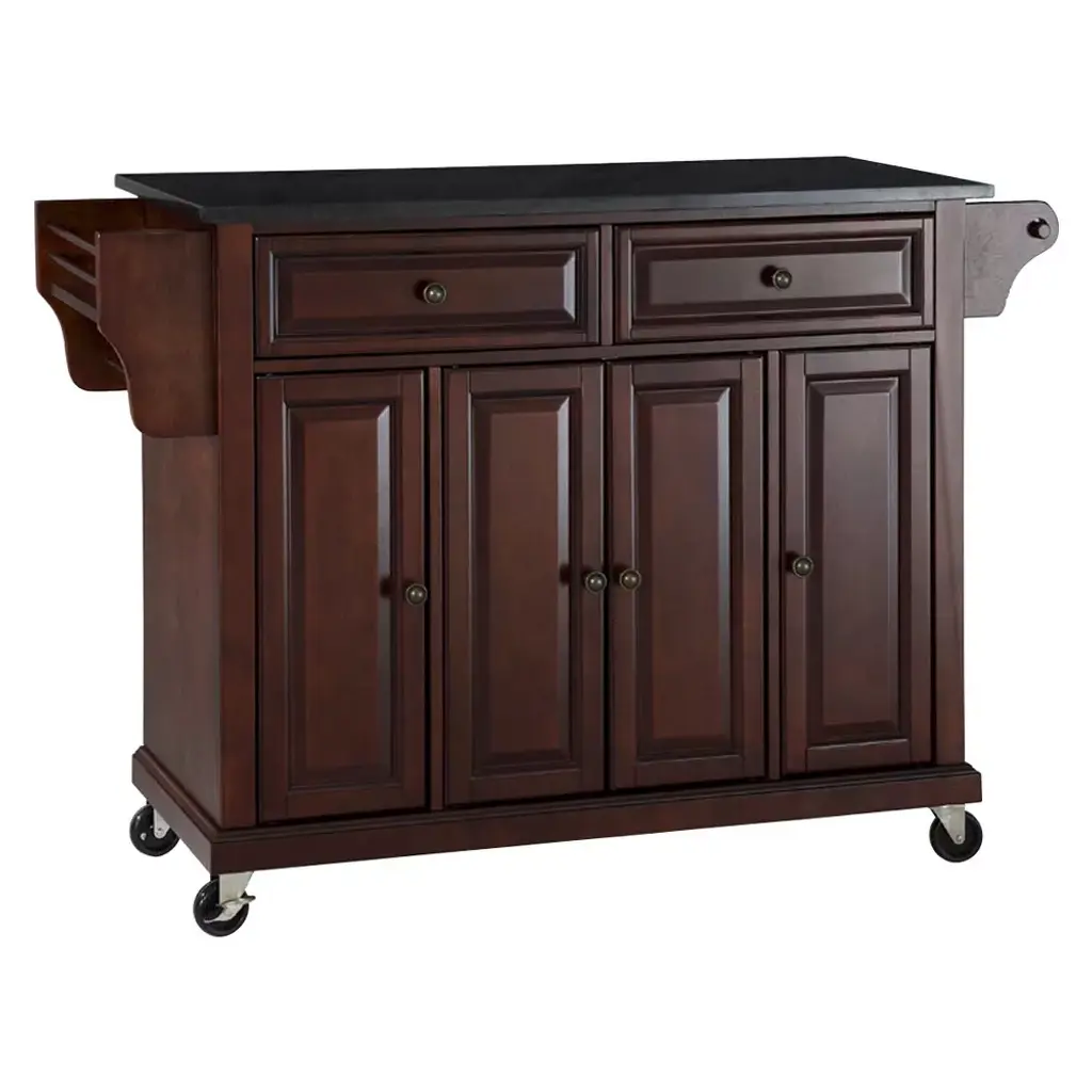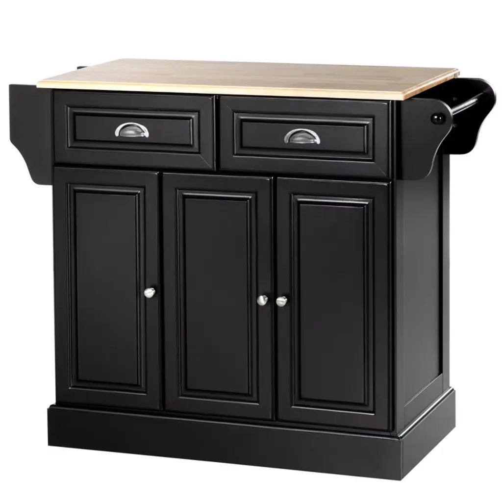 Space Saving Storage: This butcher block island offers a spacious design that allows for a wide range of items, from the little tools that fit in drawers to the larger items. The shelves in two cabinets adjust to three different heights, allowing you to adapt this kitchen furniture for big crockpots.Additional Chopping Board: Need more elbow room or counter space for food prep? This wheeling kitchen cart will do the job. With a rubberwood butcher block cutting surface, you have a workspace that can be wiped down easily when cooking.Adjustable Shelves: There is a towel rack and a spice stand on the other side, making it easy to reach for a cloth with wet hands or for a dash of flavor.Easy Mobility: With four wheels, you can quickly move the kitchen island cart from place to place. You can allow mobility or remove the wheels to avoid a mess.Portable Kitchen Island Info: Overall Dimensions: 43.25" W x 17.75" D x 35.75" H, Weight Capacity: 110 lbs. (Total), 18 lbs. (Shelf), 7 lbs. (Drawer), 4 lbs. (Spice Stand). Assembly required.