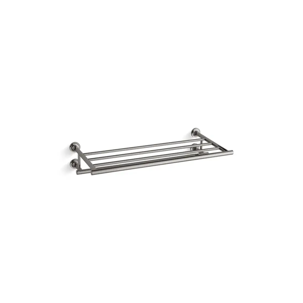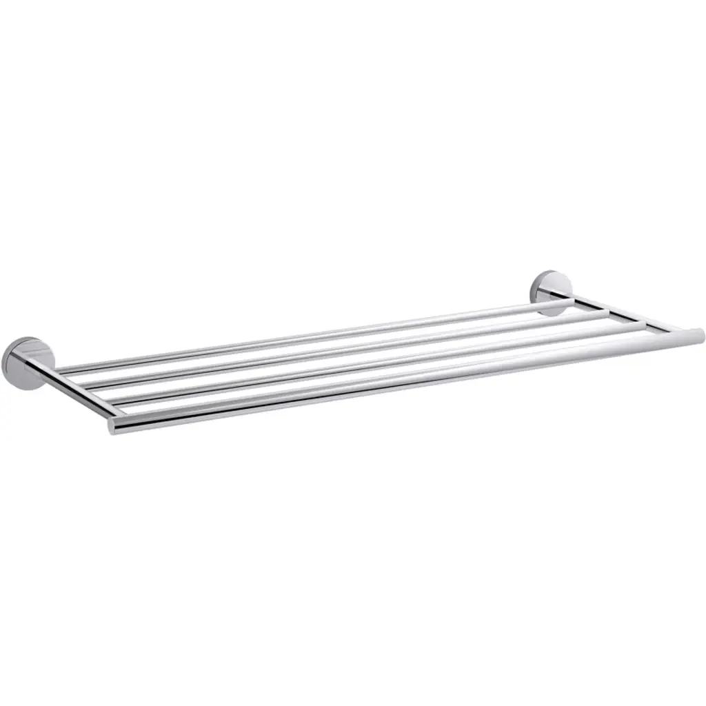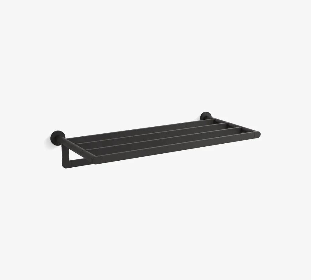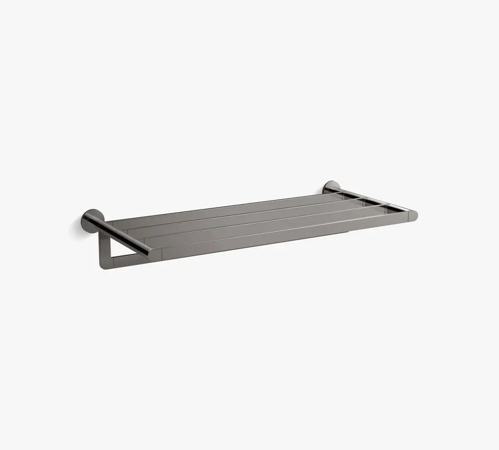 Effortlessly refresh your bath: With a combination of firm curves and precise lines, Kohler’s Composed bathroom fixtures feel richly architectural and graphically modern. This spacious shelf with towel bar is finished in Matte Black, Polished Chrome, or Vibrant Titanium with premium metal construction for durability.