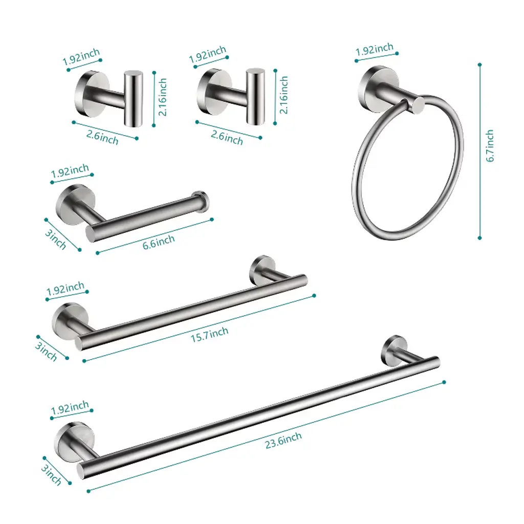 The bathroom 6-piece hardware set has a simple and stylish appearance, making your bathroom look tidier and more comfortable. It is also suitable for bathrooms, outdoor showers and remodeling bathroom wardrobes, kitchen cabinets, laundry rooms, living rooms, etc.