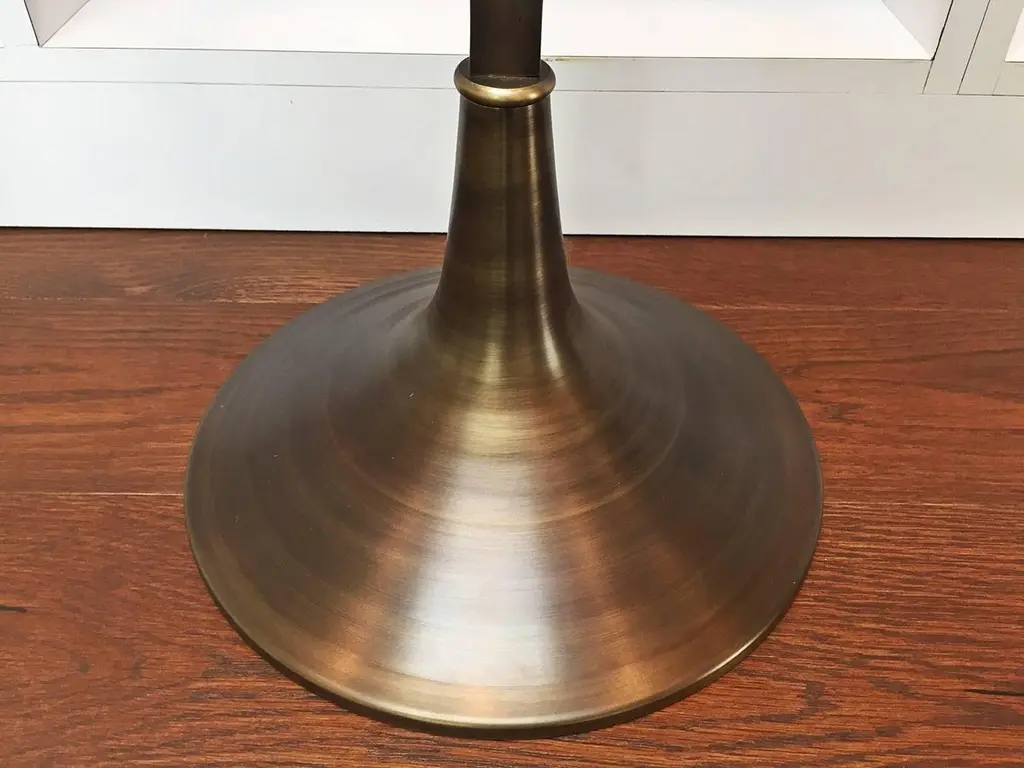 Beautiful towel holder stand designed and manufactured by Charles Hollis Jones as part of his "Ball" line originally designed for Lucille Ball hence the name "Ball" line.The ball line is recognized most dominantly by its motif of the ball shape used to fasten, connect and hide the screws and bolts of this line.This piece is made out of solid brass and is beautifully finished in an dark antique brass look.We also have this piece in polished nickel.Measurements:60.25" high x 17.25" wide x 12" deep (at base).If you are coming to our show room to see a piece please call ahead of time because due to our large inventory some items are available by appointment only.All of our sales are final, no refunds, no exchanges and no returns, no exceptions.