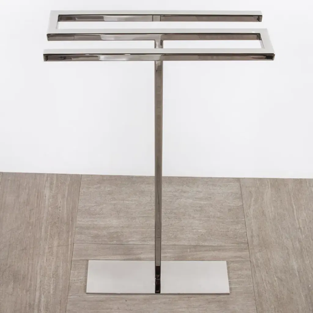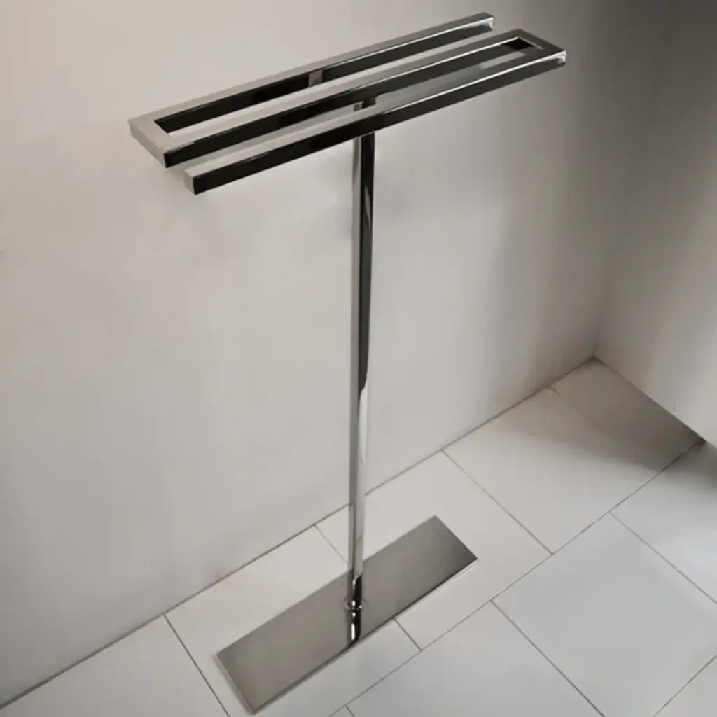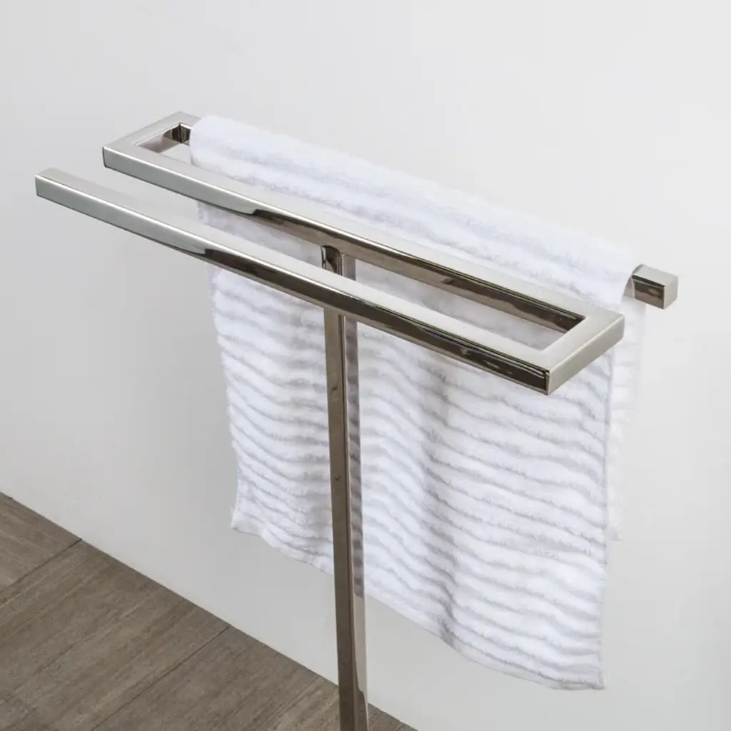 Measuring 18 inches wide and 38 inches in height, this towel stand provides ample space for hanging your bath towels and hand towels. Its sturdy construction ensures stability and long-lasting performance, while its stylish design complements any bathroom décor. Step into a world of stylish towel organization with the Linea Collection. These floor-mounted towel stands crafted from sleek stainless steel offer the perfect blend of modern design and functionality, keeping your towels dry, organized, and readily accessible in any bathroom.