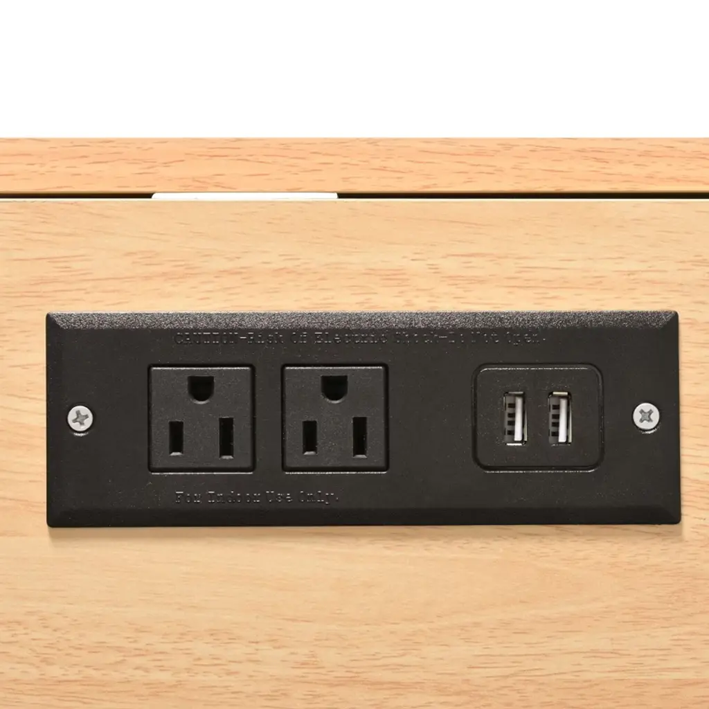 This dual folding multifunctional kitchen island transforms effortlessly between a spacious workstation (55.7"W x 34"D), dining table (seats 4), or compact side table with two drop-leaf extensions. It includes ample storage—3 deep drawers, 2 cabinet doors with adjustable shelves, and open compartments—plus a built-in charging hub (3 AC + 2 USB ports) for appliances. Made with CARB II-certified MDF and a 400lb-capacity top, it’s durable, waterproof, and features lockable wheels for mobility or stationary use.
