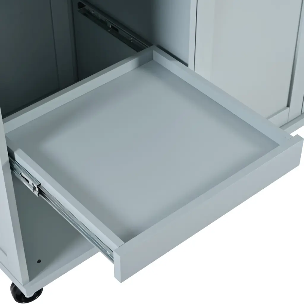 Maliang Kitchen Island With Foldable Counter Top, Slide-out Shelf, Towel Rack And Drawer, Rolling Kitchen Cart On Wheels, Gray