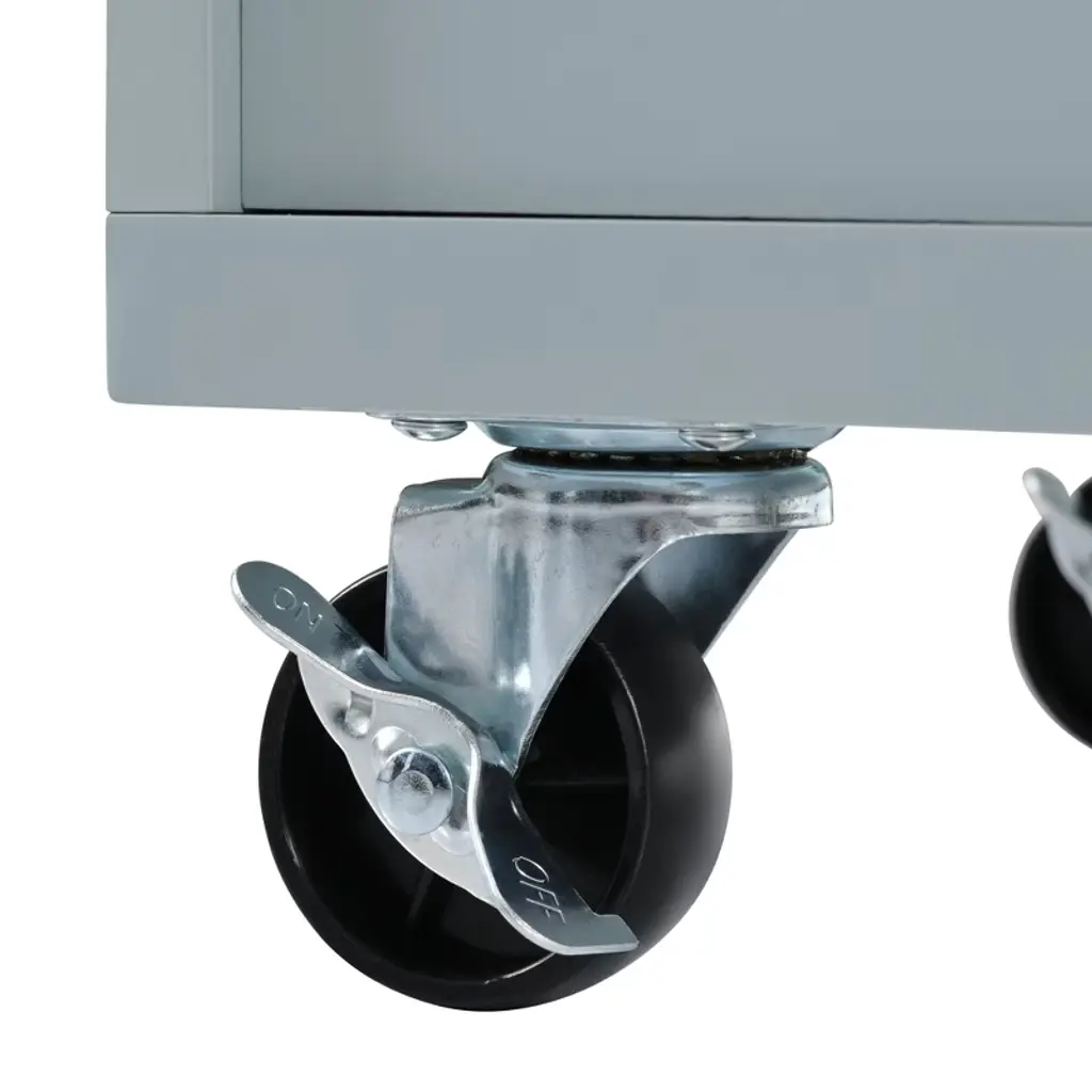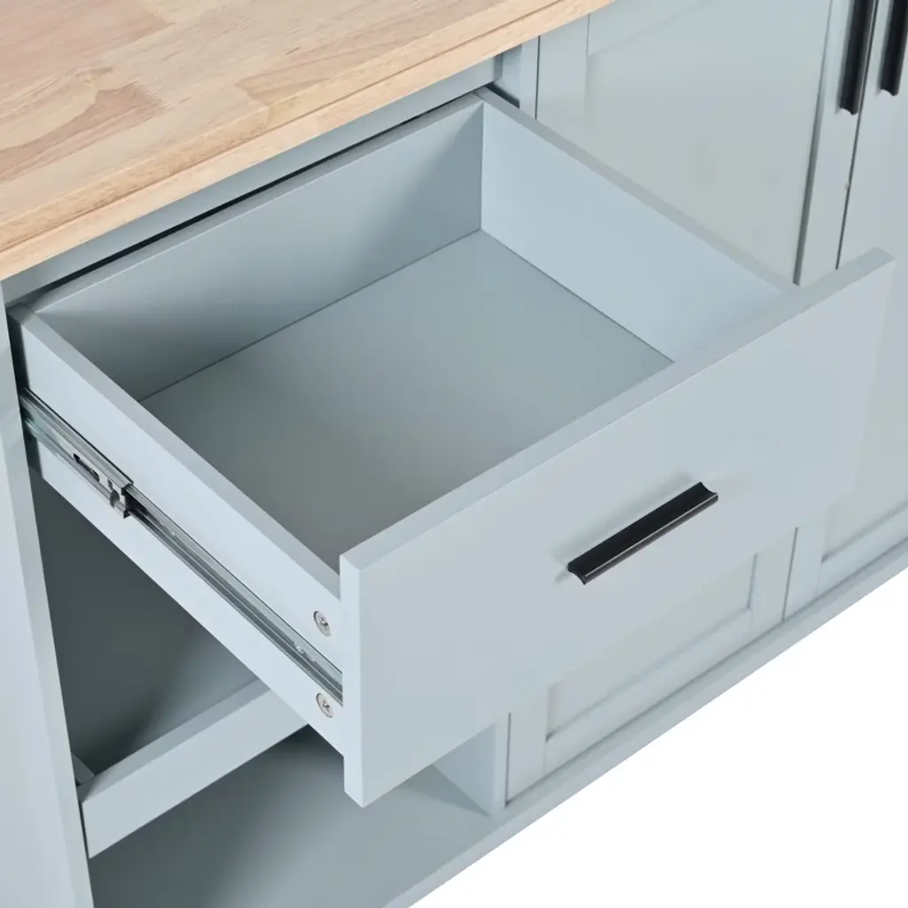 Foldable Kitchen Island with Mobile Design – This versatile kitchen cart features a foldable countertop (47.24" x 16.57" when closed, 47.24" x 33.15" when open), providing flexible workspace for meal prep or entertaining. Designed for multi-person use, it can seat up to 4 people when fully extended. The spacious storage includes a drawer, pull-out shelf, two cabinets, and an adjustable towel rack, keeping your kitchen organized. Built with durable MDF and rubber wood, it offers a smooth, scratch-resistant surface. Five 360° swivel wheels (2 lockable) ensure easy mobility, while optional fixed feet provide stability.