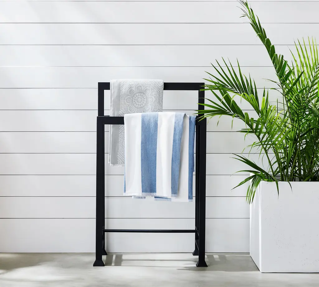 Organize your pool essentials with weather-proof storage that makes a splash. With a streamlined silhouette and sturdy steel frame, this valet stores towels and cover-ups while letting them dry between use.