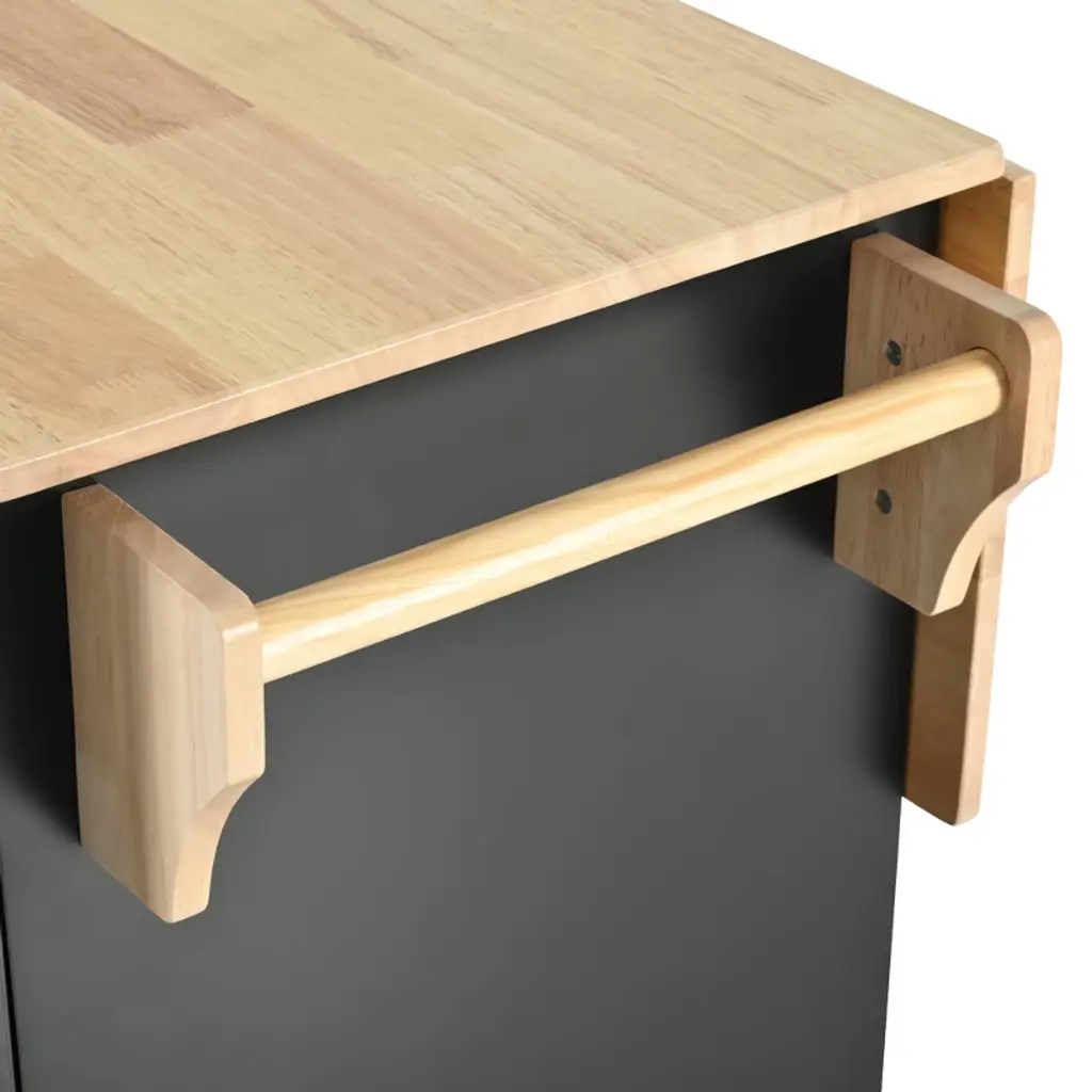 This kitchen island combines vintage charm with modern functionality, designed with rich finishes and stylish hues that seamlessly blend with rustic interior designs. It features a pull-out countertop extension, providing extra workspace when needed. Sturdy construction ensures durability, and spacious storage offers ample room for kitchen essentials. Whether used for preparing dinner, dining, or additional storage, this versatile kitchen cart serves as the perfect centerpiece for a busy kitchen.