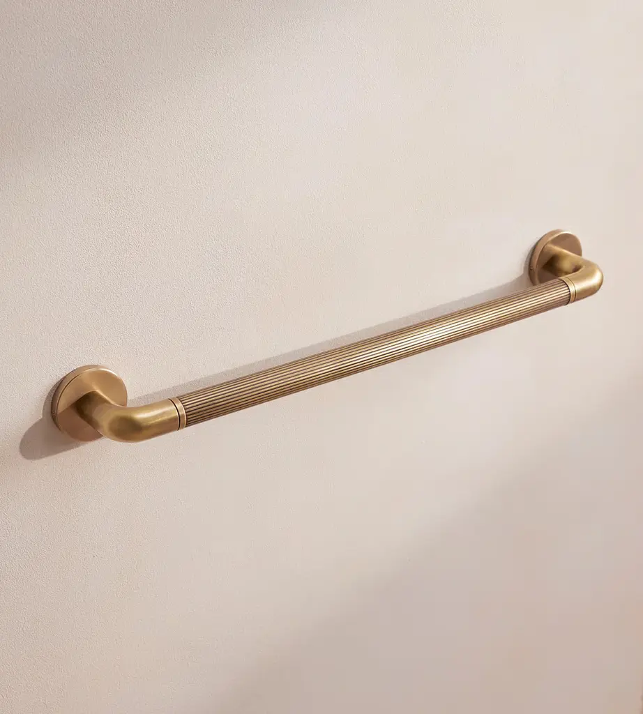 Designed in-house, our Mayfair bathroom accessories collection adds a sense of understated glamour in an antique brass finish with polished nickel plating. Inspired by Soho House Mexico City, the unique ribbed detail mimics the scalloped edge of the House's bathroom fixtures.
