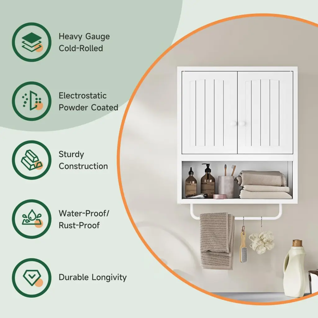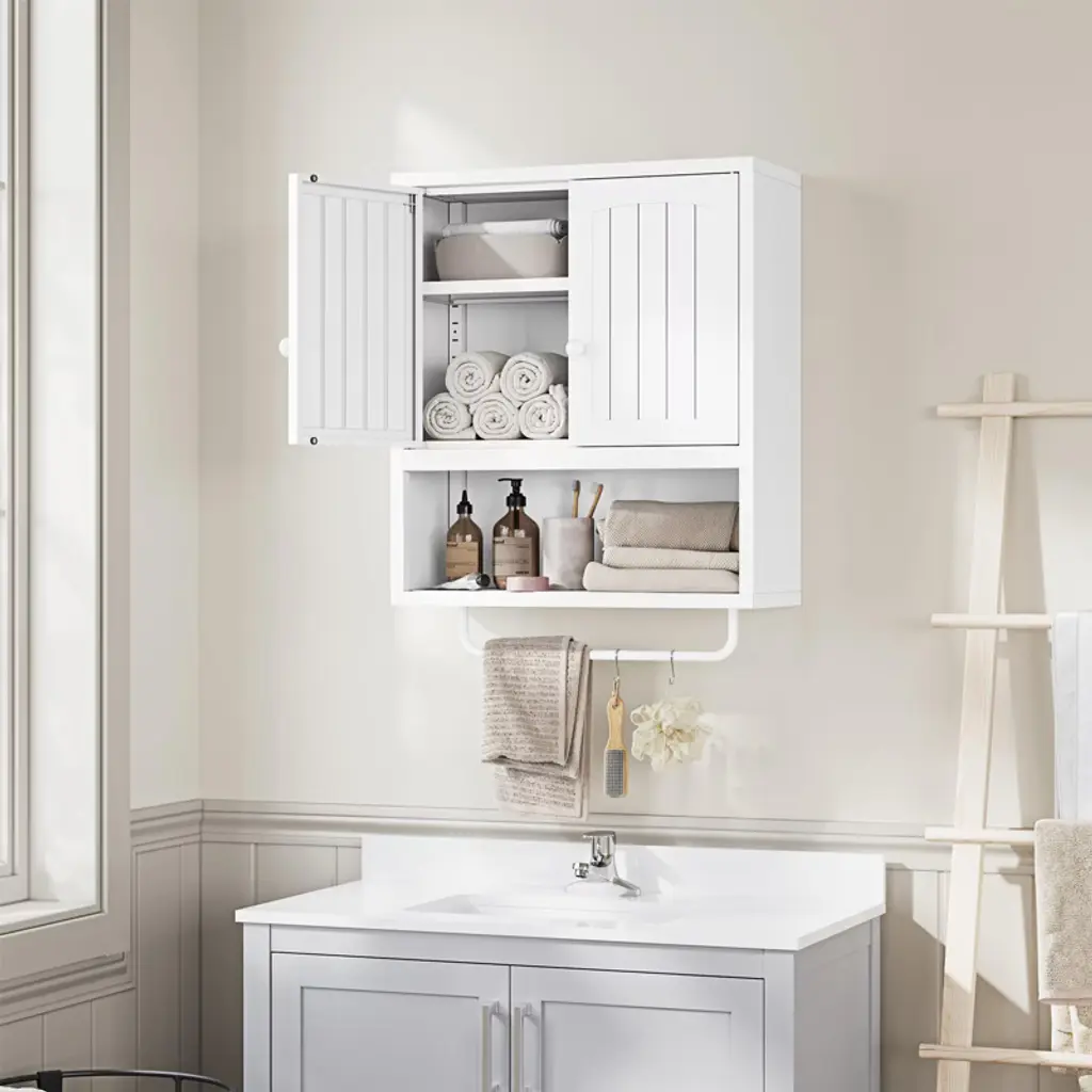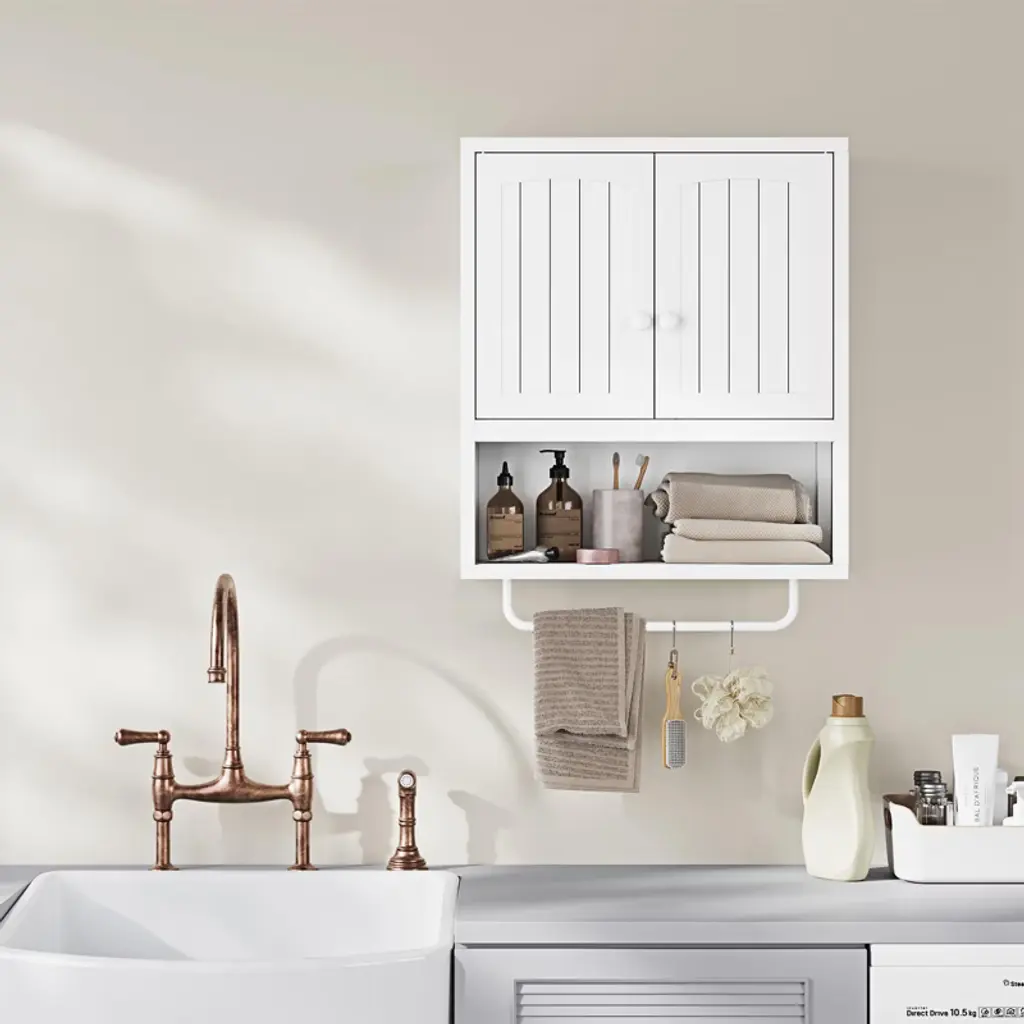 Mlezan White Bathroom Cabinet: 2 Doors, Towel Rack, Wall-mounted Storage For Bathroom Or Laundry. Over-toilet Design, Compact And Functional.