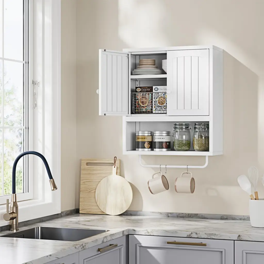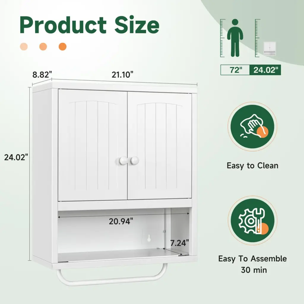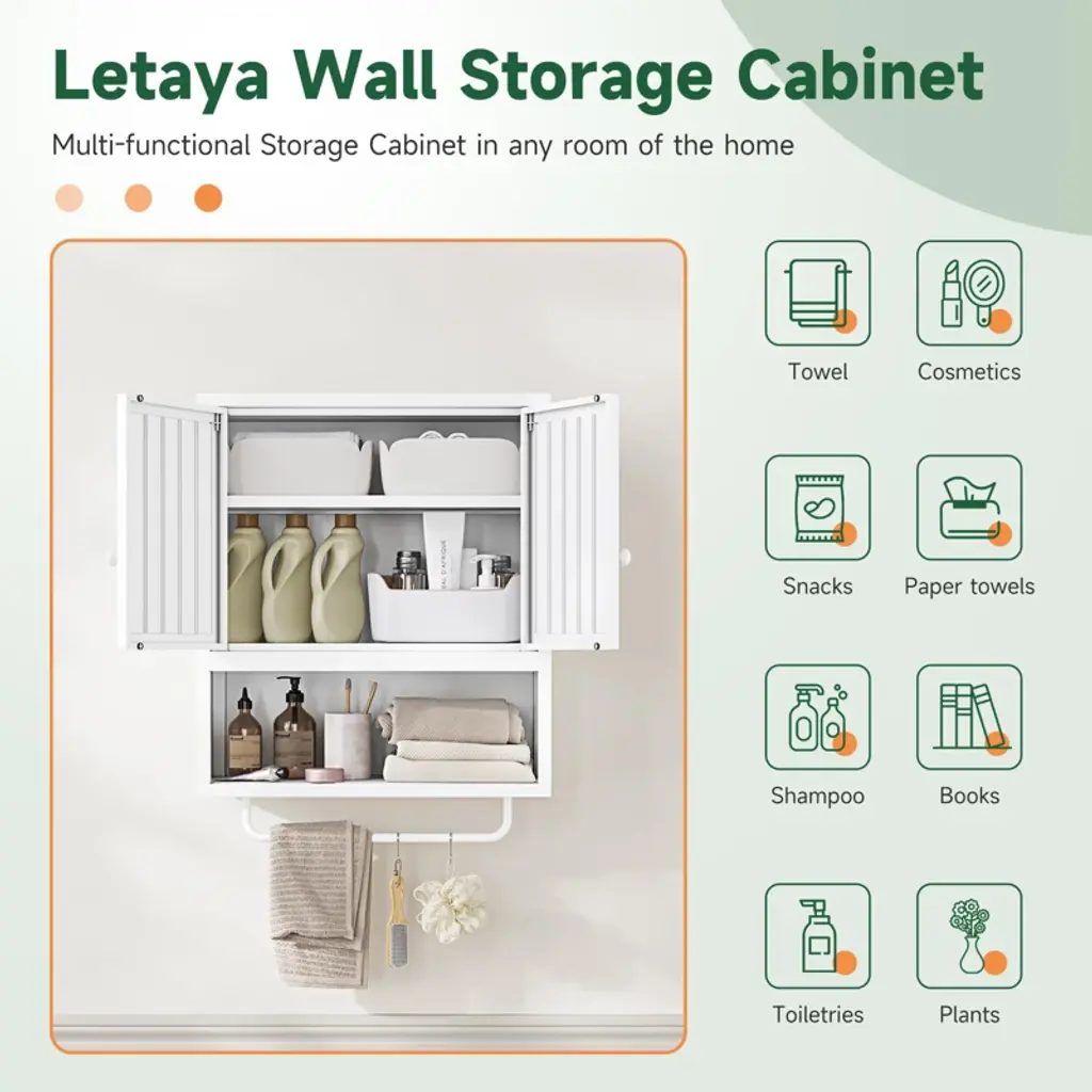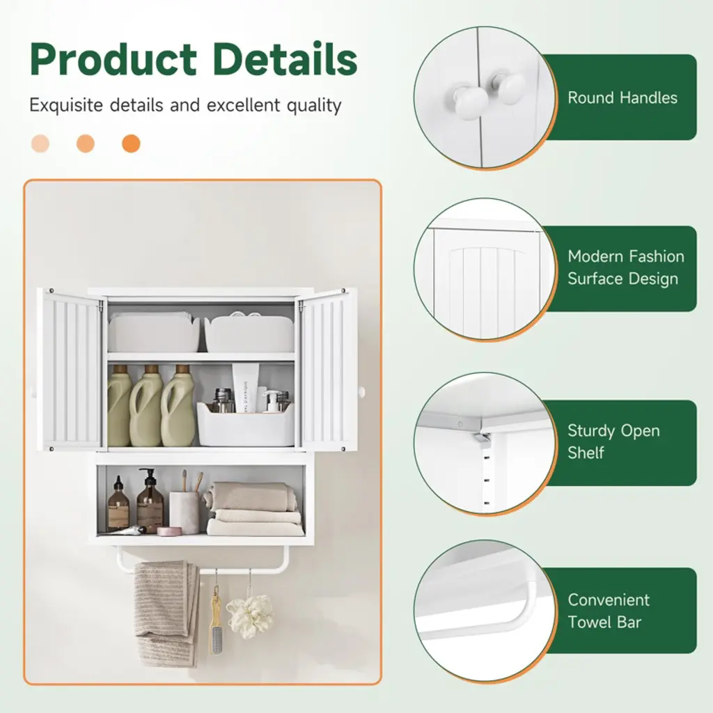 Mlezan White Bathroom Cabinet: 2 Doors, Towel Rack, Wall-mounted Storage For Bathroom Or Laundry. Over-toilet Design, Compact And Functional.
