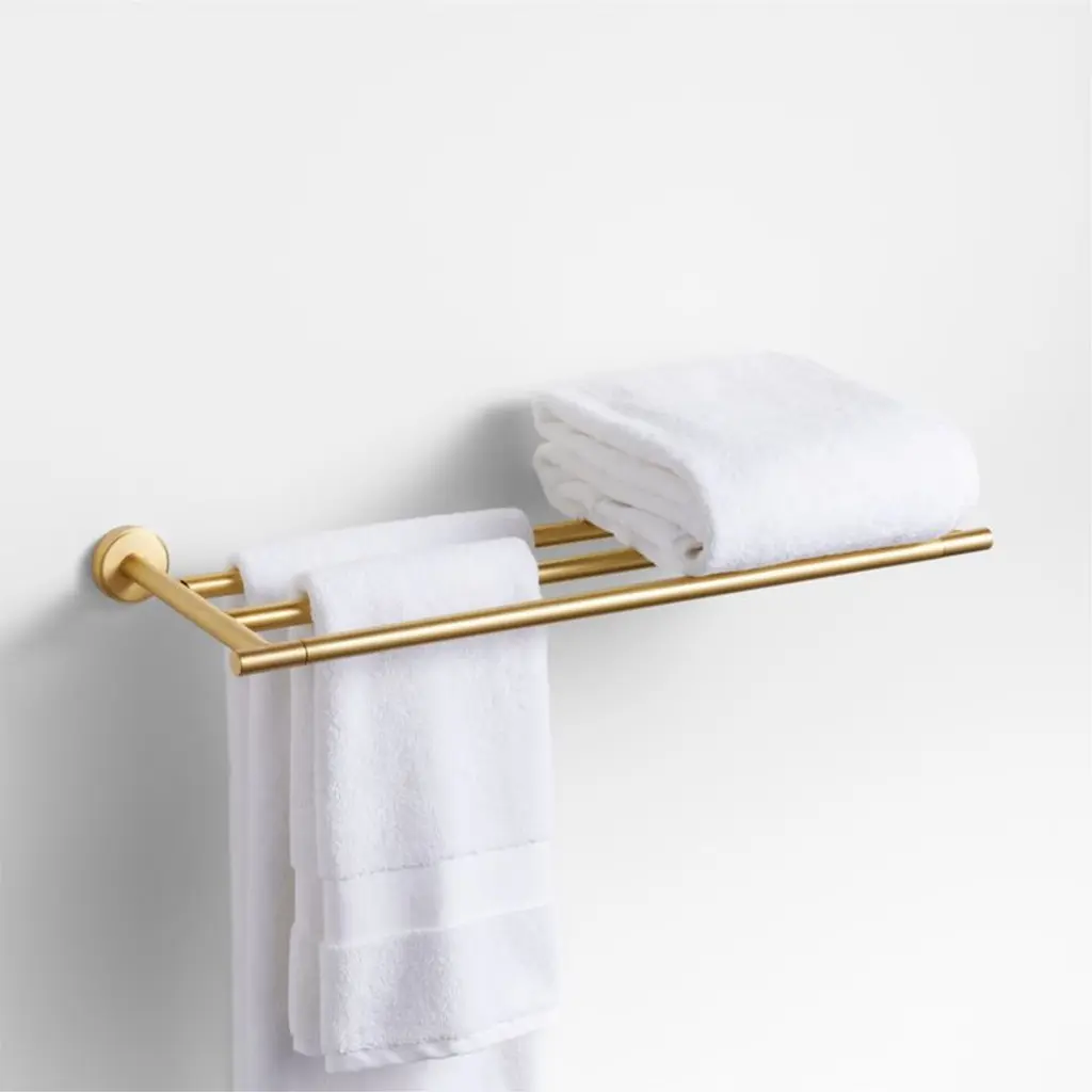 Modern Flat-End Brushed Brass Wall-Mounted Bathroom Towel Rack