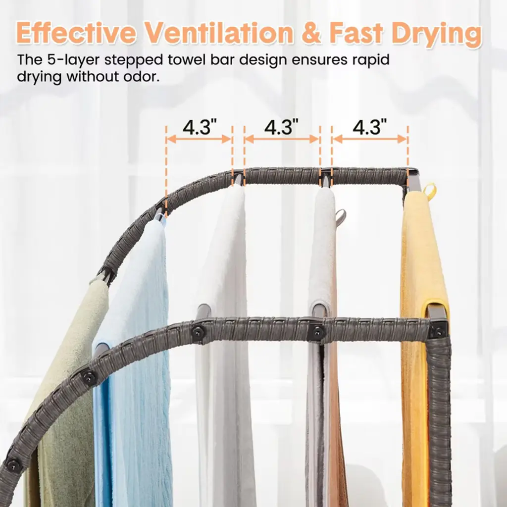 Odk Towel Rack, 5 Bar Pool Towel Rack With Rattan Base, Outdoor Towel Rack, Storage Organizer With Compartment For Outdoor/indoor