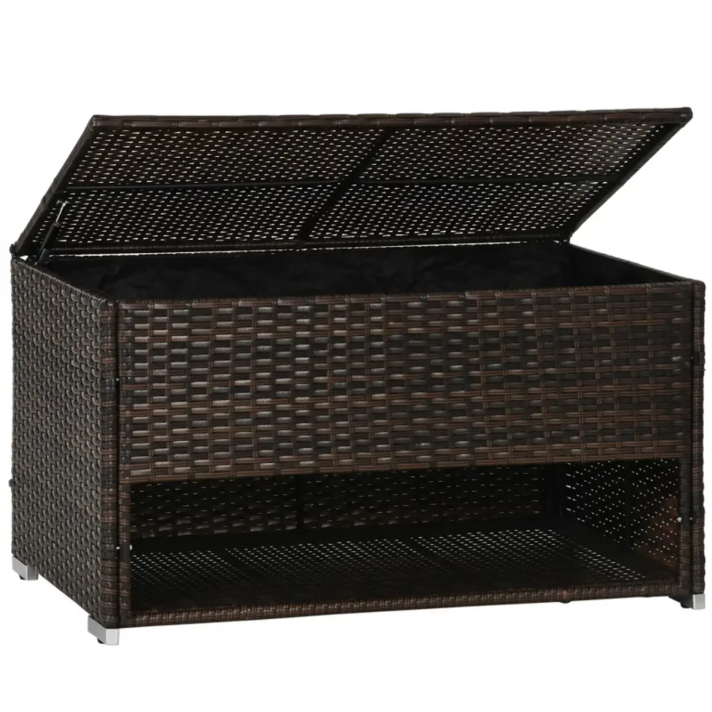 Outsunny Outdoor Deck Box & Shoe Storage, Pe Rattan Wicker Towel Rack With Liner For Indoor, Outdoor, Pool, Toys, Garden Tools, Brown