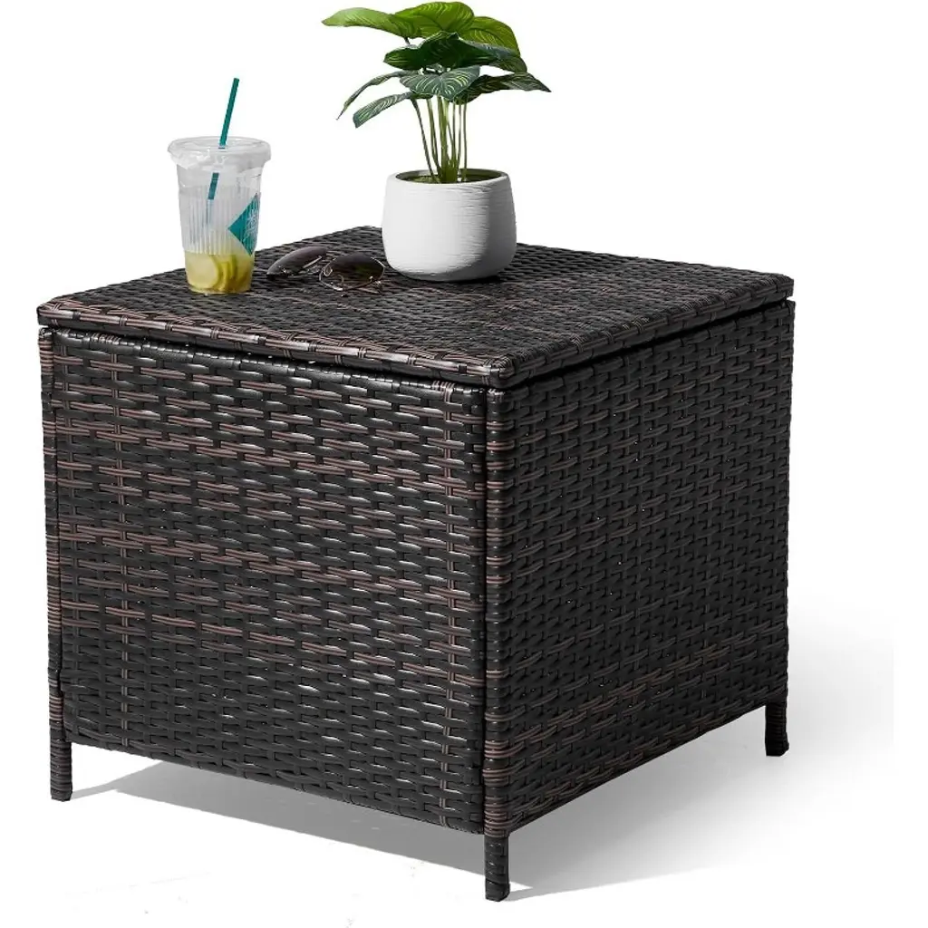 Keep your garden tools, or pool accessories clean and nearby with an Outsunny deck box. A lining keeps your belongings safe inside, and a hydraulic lift helps you open it with ease. Handwoven with PE wicker, it offers all the tropical style of the traditional type. Our outdoor storage offers more than just aesthetics; included is a special shelf you can use to store shoes or take up as a towel rack. On the porch or poolside, get inside out with Outsunny.