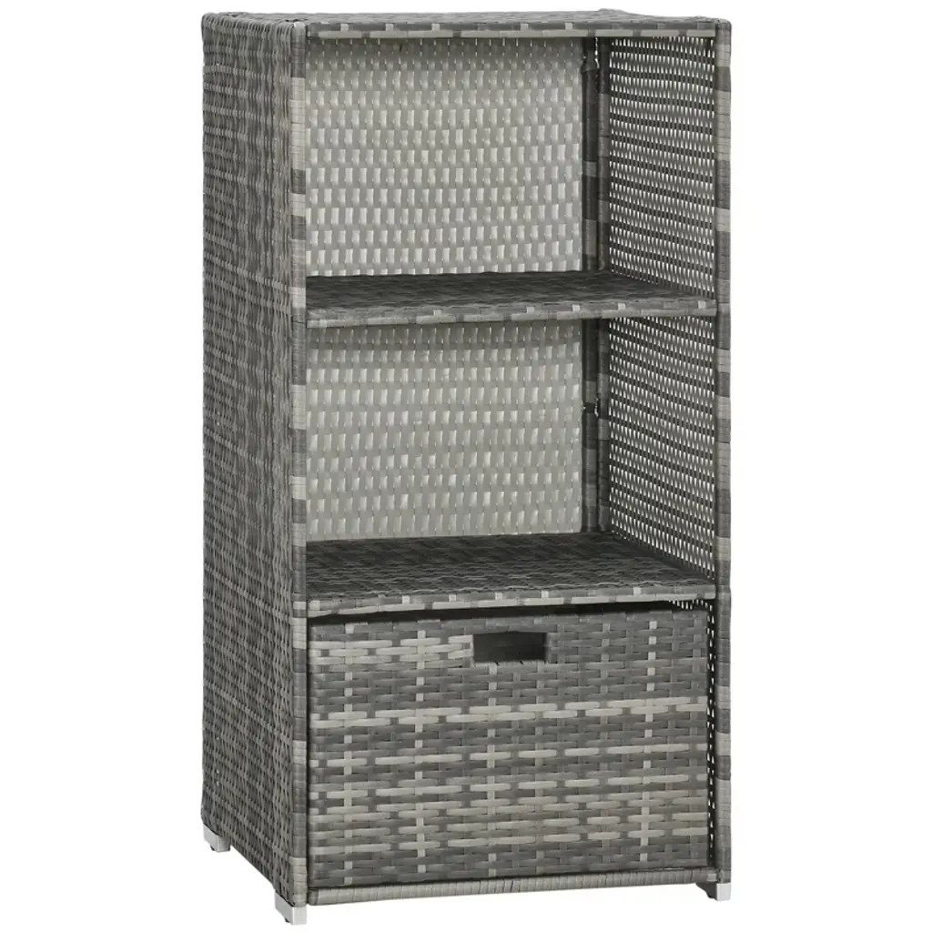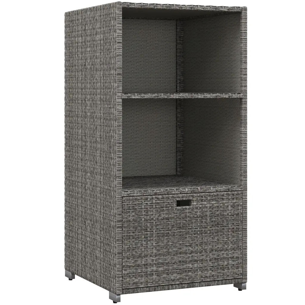 Outsunny Patio Wicker Pool Caddy, Pe Rattan Storage Cabinet Holder, Outdoor Towel Rack For Pool For Space Saving Design, Mixed Gray
