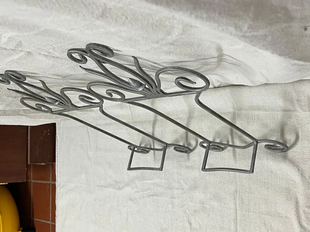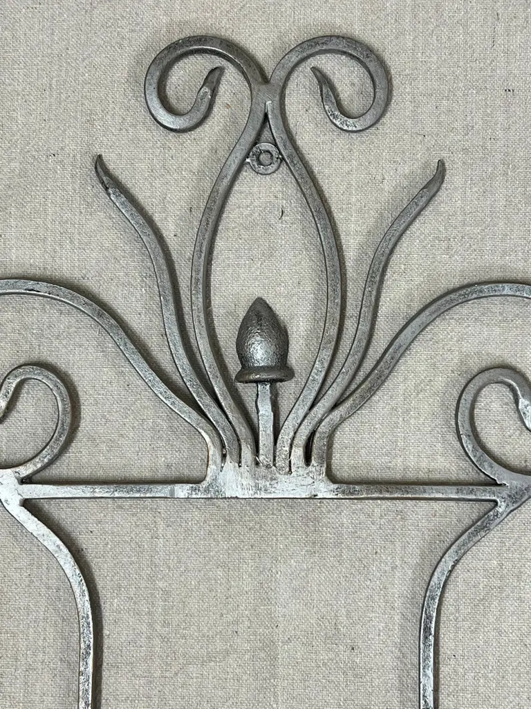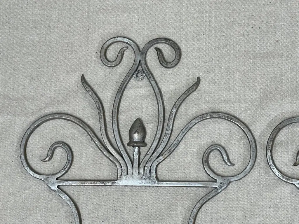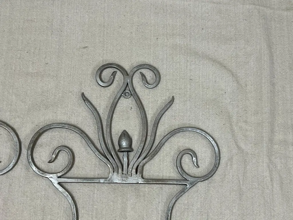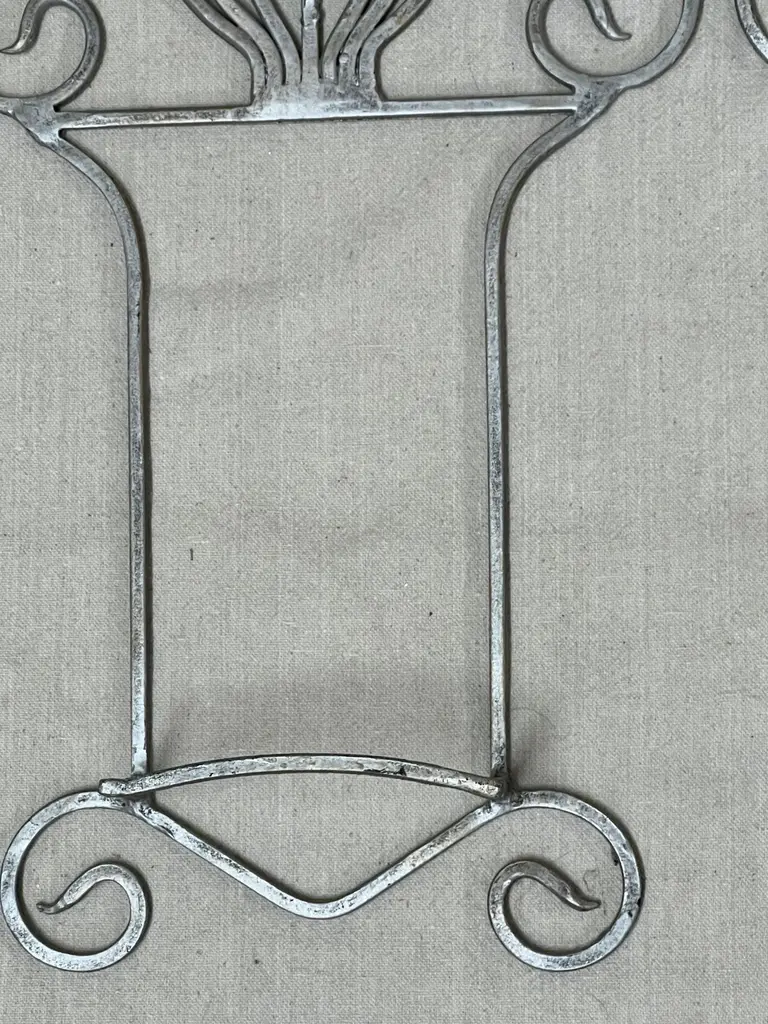 Price is for 2 . A pair. Pair of Large Silver Floral Hand Towel Racks. Nice decorative racks to hold towels or scarves . Perfect for that formal powder room to hold your monogrammed linen hand towels. Or use in a dressing room to hang scarves on. Silver painted iron. Heavy and well made. Parcel ship quickly.
