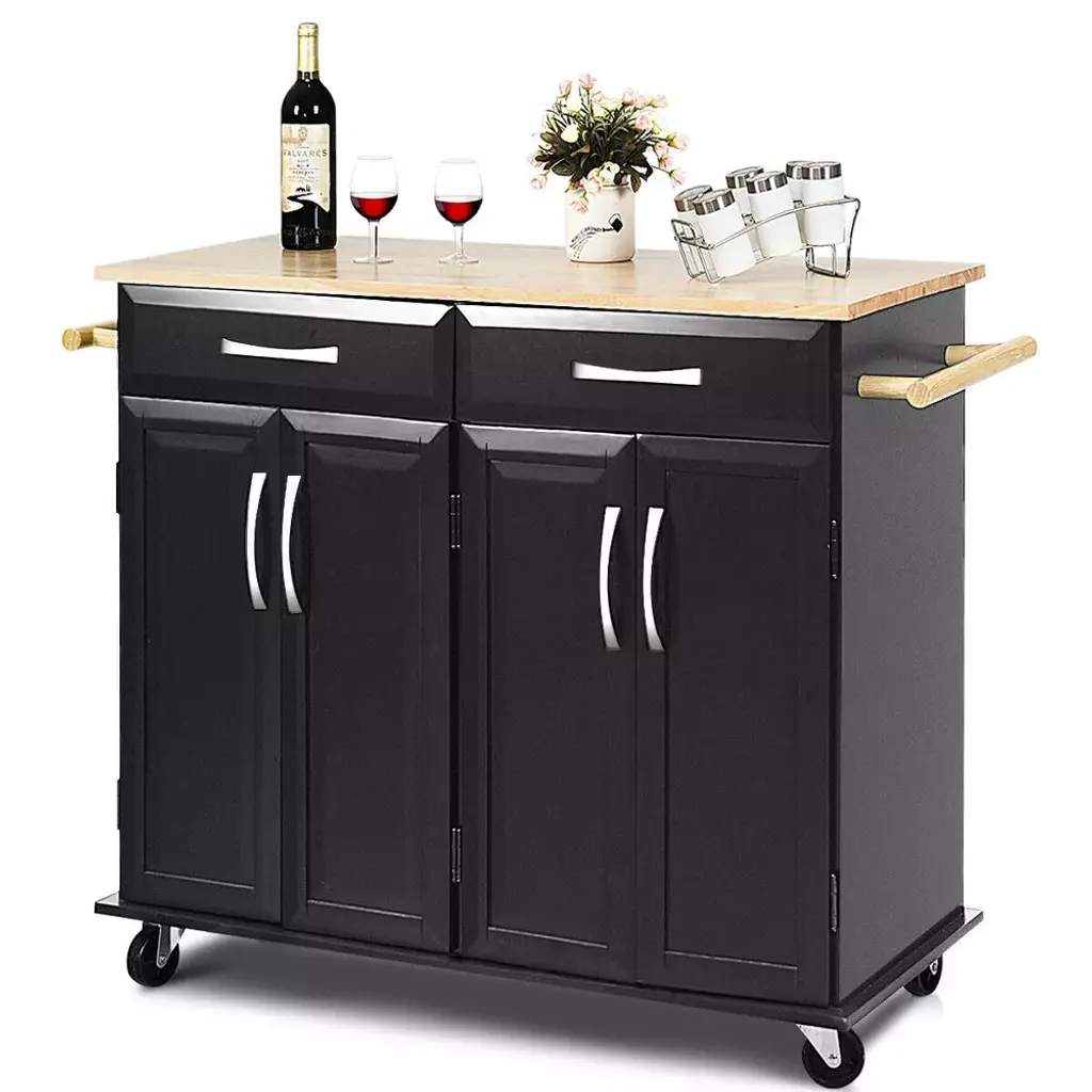 Elevate Your Kitchen with Timeless Elegance! This retro-inspired kitchen island combines vintage charm with modern functionality, featuring a smooth painted finish, embossed panels, and gold knobs for a premium aesthetic. Maximize storage with 2 cabinet doors, 5 drawers, adjustable shelves, and side spice racks, while the 43.7” drop-leaf tabletop offers flexible space for prep or dining. Built with durable CARB Phase II certified MDF and OAK veneer, plus 5 swivel wheels (2 lockable), it’s a stylish, mobile solution that’s easy to assemble and designed to last—perfect for decluttering and enhancing your kitchen’s vibe.
