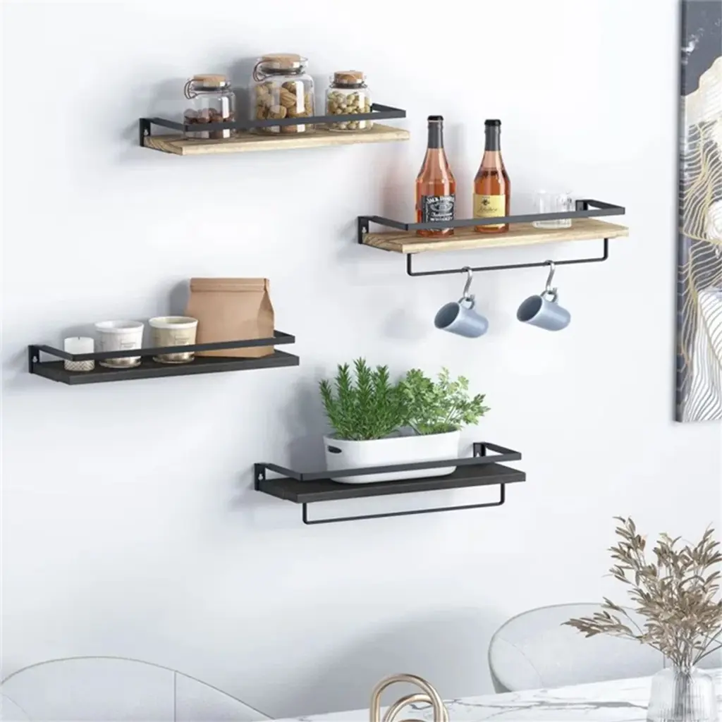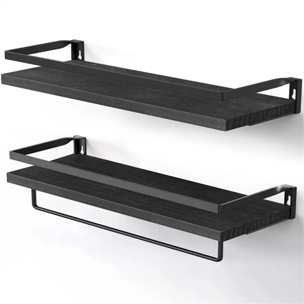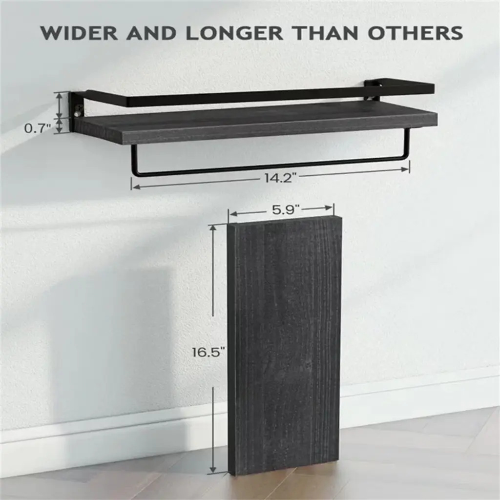 A Touch of Rustic - Floating Wall Shelf With Towel Bar Our wall shelves provide a sophisticated modern look that blends with any theme. Made of solid paulownia wood, our floating shelves are as much a unique piece of art as a storage item, with beautiful grain patterns and colors that stand out. Decorate your walls with our floating shelves that look as lovely paired together as they do apart. In the bathroom, you can enjoy a relaxing and comfortable bath with the wall shelf where the clothes, towels, roll tissues, or clean products sit on it. In the kitchen, you can always enjoy easier cooking with the wall shelf where you can store the spices on it within your reach.