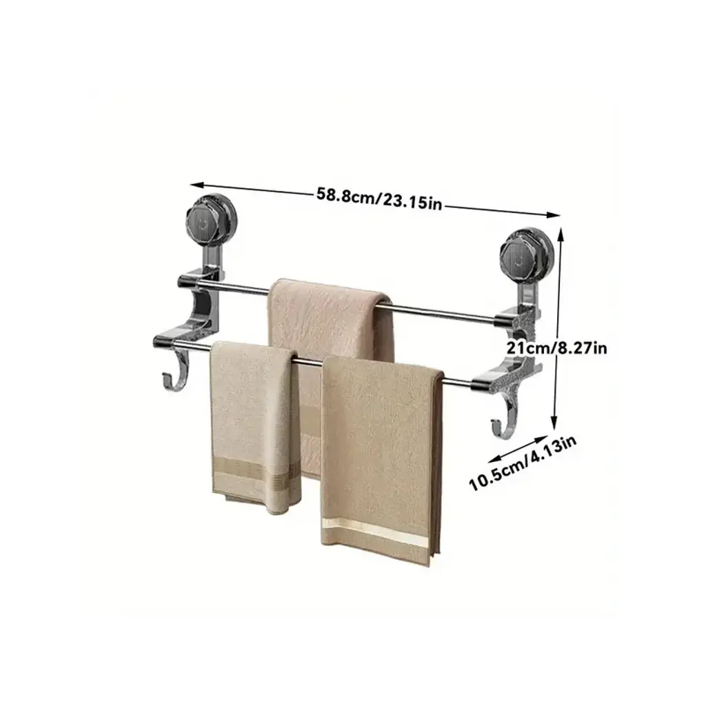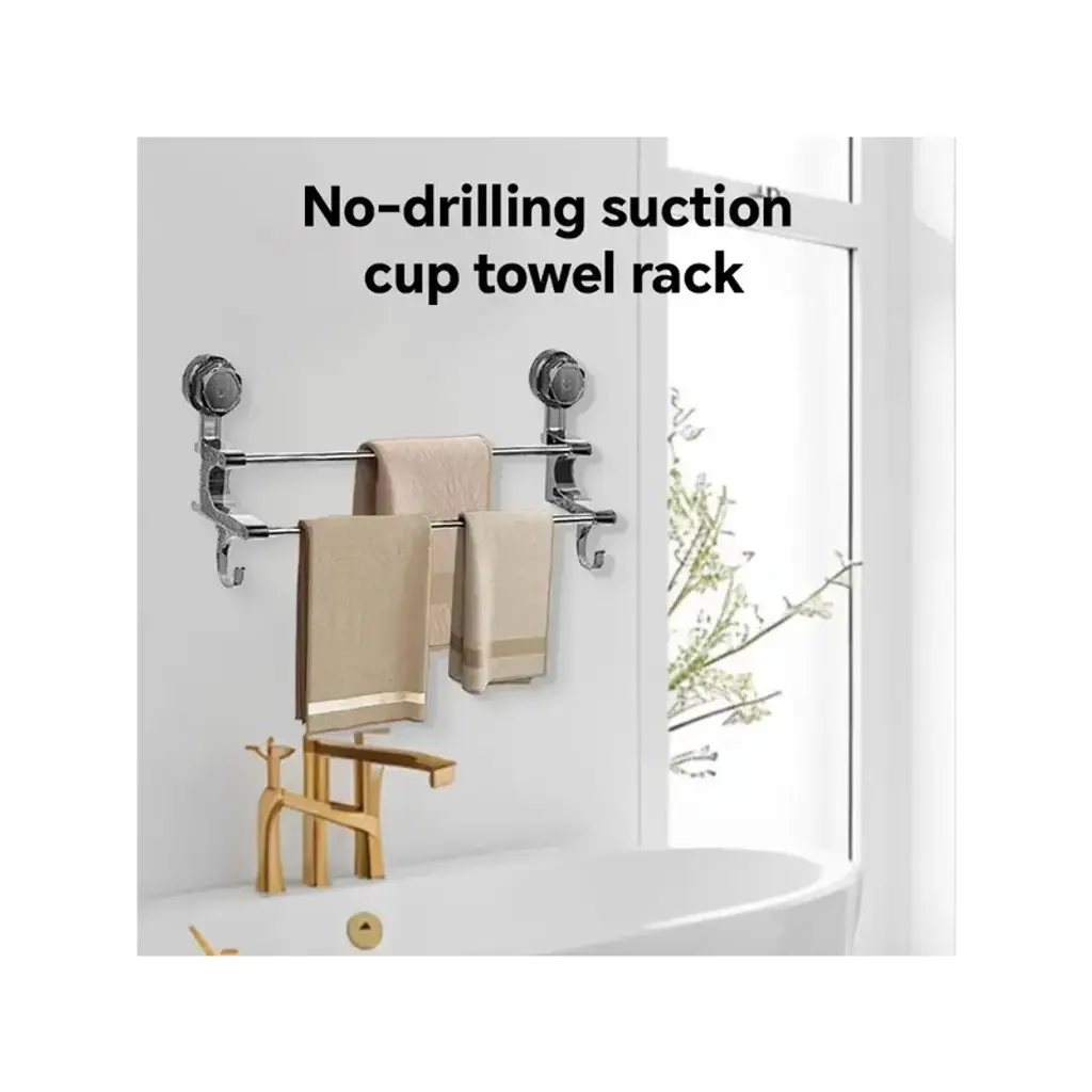 Key Features:?? No Drilling Needed Powerful suction cups adhere firmly to tiles, glass, or smooth surfaces¡ªno screws or marks. Ideal for renters or quick bathroom upgrades. ?? Sturdy & Stylish Metal Hooks Rust-resistant metal hooks hold towels, robes, or accessories securely. Sleek finish complements any bathroom decor (modern, farmhouse, minimalist). ?? Versatile Organizer Holds multiple towels, loofahs, or small baskets. Great for bathrooms, kitchens, RVs, or dorm rooms. ?? Easy to Install & Adjust Mounts in seconds¡ªjust clean the surface and press. Adjustable angle for optimal space use. Dimensions: [Include if available] Why Choose This Rack?? Damage-free ¨C No holes or permanent installation.? Multi-purpose ¨C Use in bathrooms, kitchens, or entryways.? Durable ¨C High-quality materials resist humidity and daily wear.