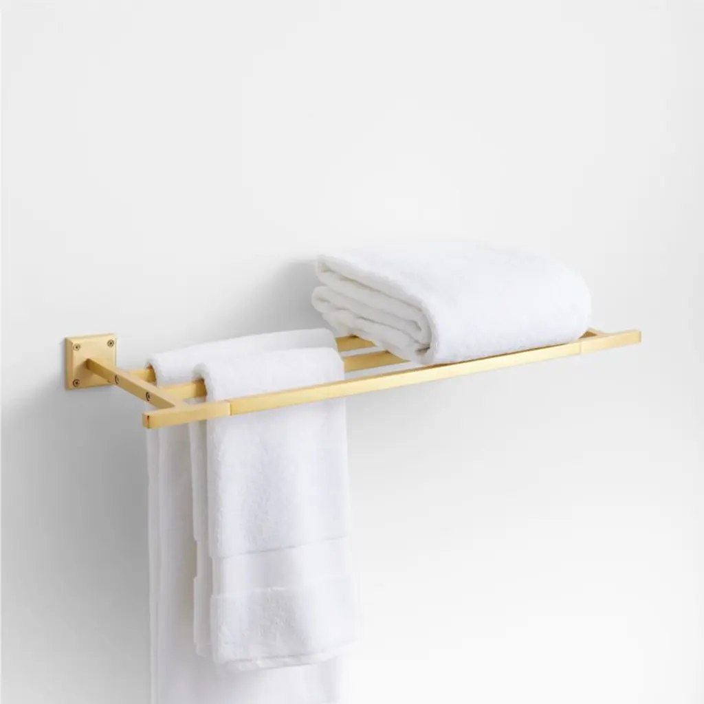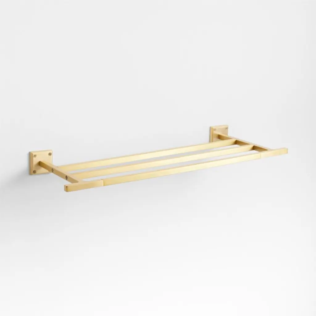 Square Edge Brushed Brass Wall-Mounted Bathroom Towel Rack