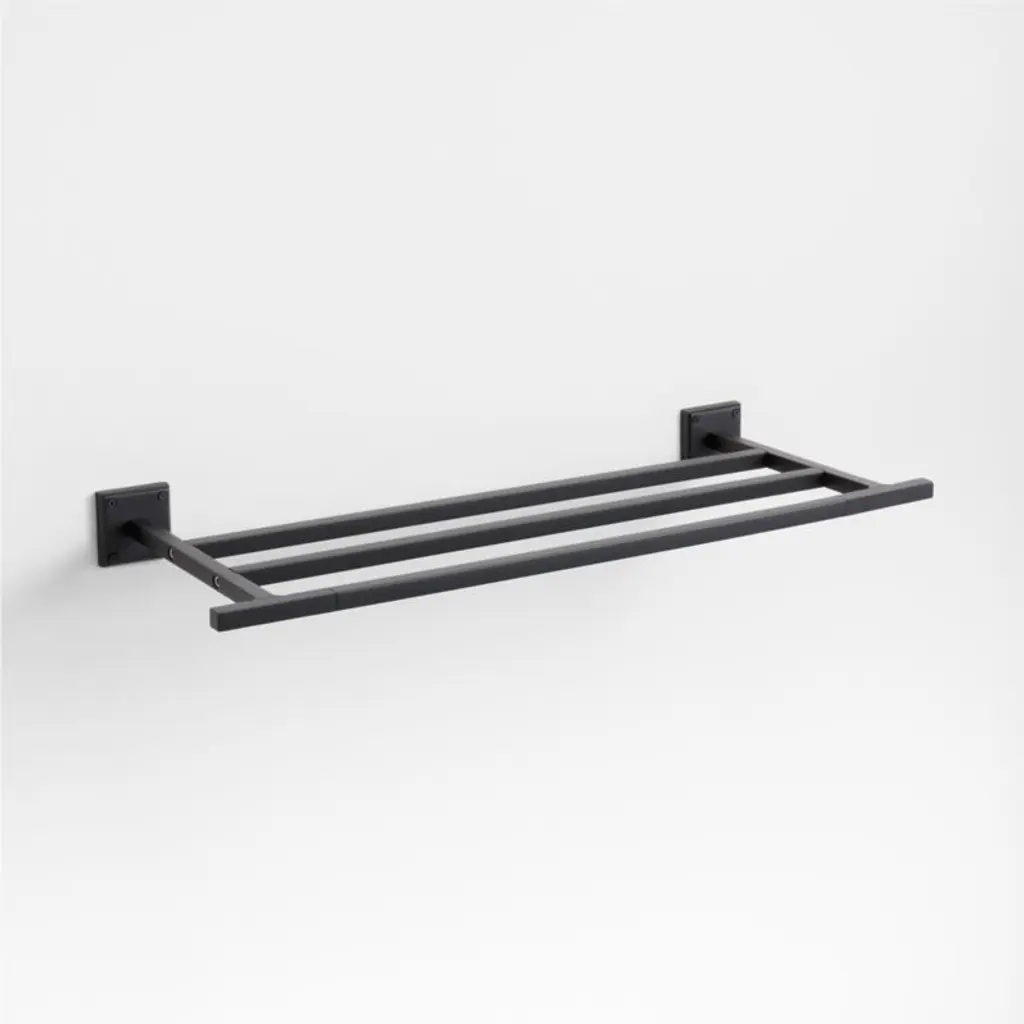 Square Edge Matte Black Wall-Mounted Bathroom Towel Rack