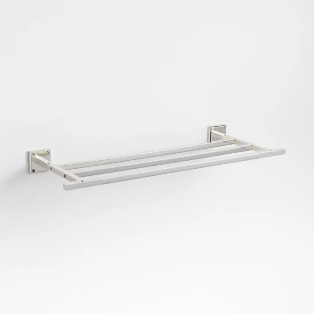 Sometimes it's the small things that pull a room together. That's why we've designed a hardware collection with modern silhouettes, clean lines and a touch of tradition to give your bathroom that perfect finishing touch. Rounded corners and smoothed edges soften the minimalist design of the towel rack made of brass finished in shiny chrome. The three-rod design lets you hang multiple towels, while the rack's mix of square and rectangular shapes gives it a geo-forward look that's bold and contemporary. The towel rack is ready to mount on the wall with included hardware.