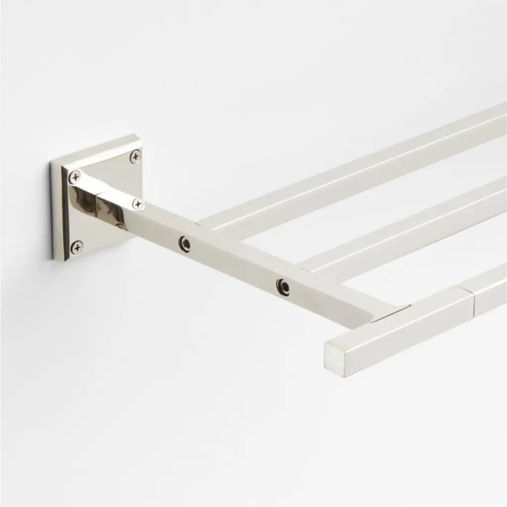 Sometimes it's the small things that pull a room together. That's why we've designed a hardware collection with modern silhouettes, clean lines and a touch of tradition to give your bathroom that perfect finishing touch. Rounded corners and smoothed edges soften the minimalist design of the towel rack made of brass finished in shiny chrome. The three-rod design lets you hang multiple towels, while the rack's mix of square and rectangular shapes gives it a geo-forward look that's bold and contemporary. The towel rack is ready to mount on the wall with included hardware.