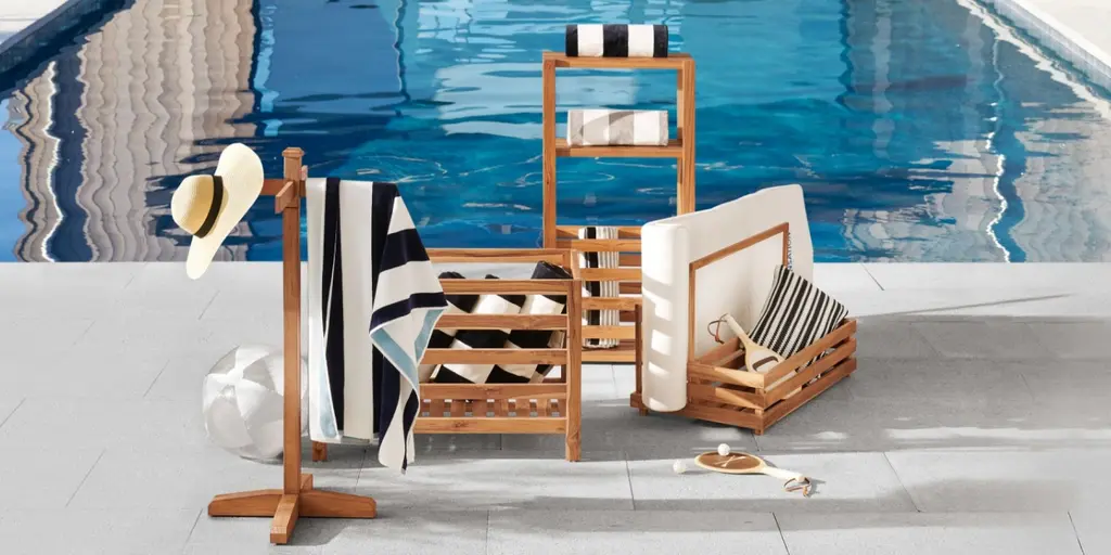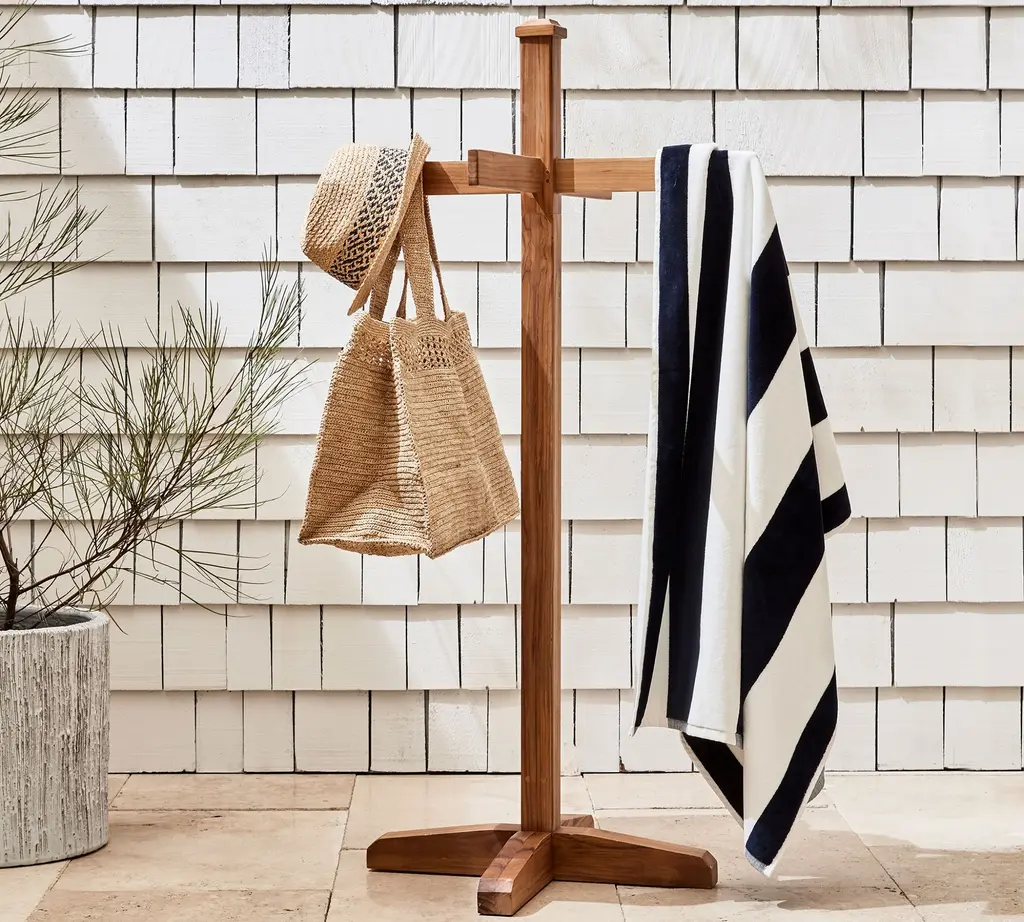 The perfect resting place for towels, goggles, and bags, this stand is a must for the well-appointed pool area. We selected the highest quality teak we could find and left it as nature intended, with natural oils that repel moisture. The result is furniture that will age gracefully to a silvery patina.