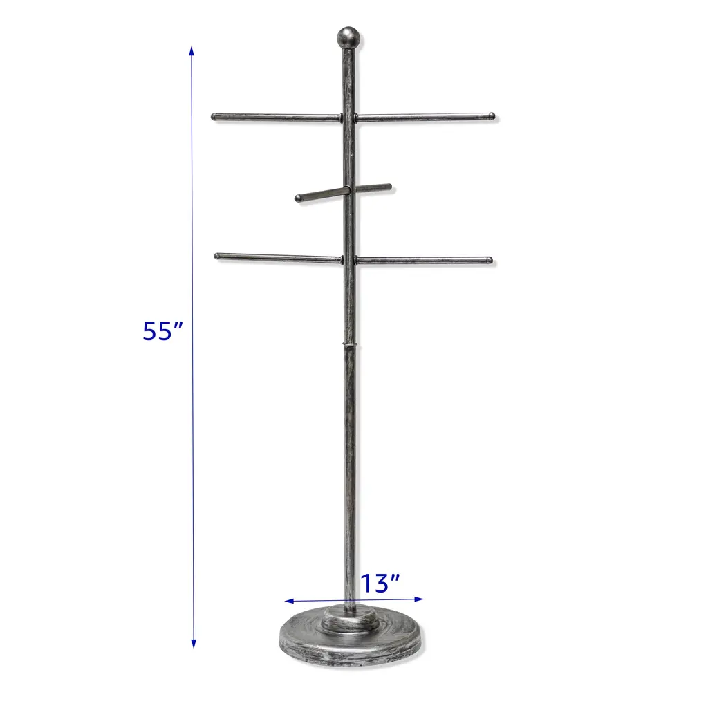 Situate this metal towel rack near your pool or spa to keep your towels, robes, and other items dry and handy. Three well-balanced hanging rods provide ample space for up to six towels, and the rack's base is well-weighted to ensure that it doesn't fall over when the wind blows.