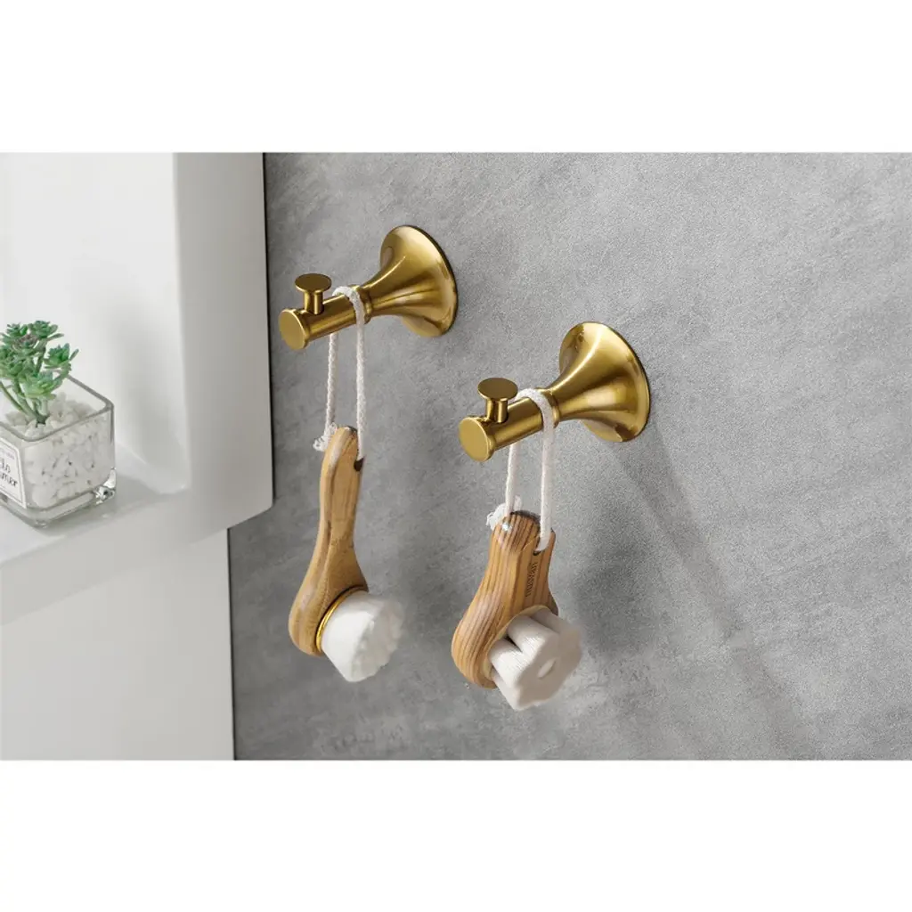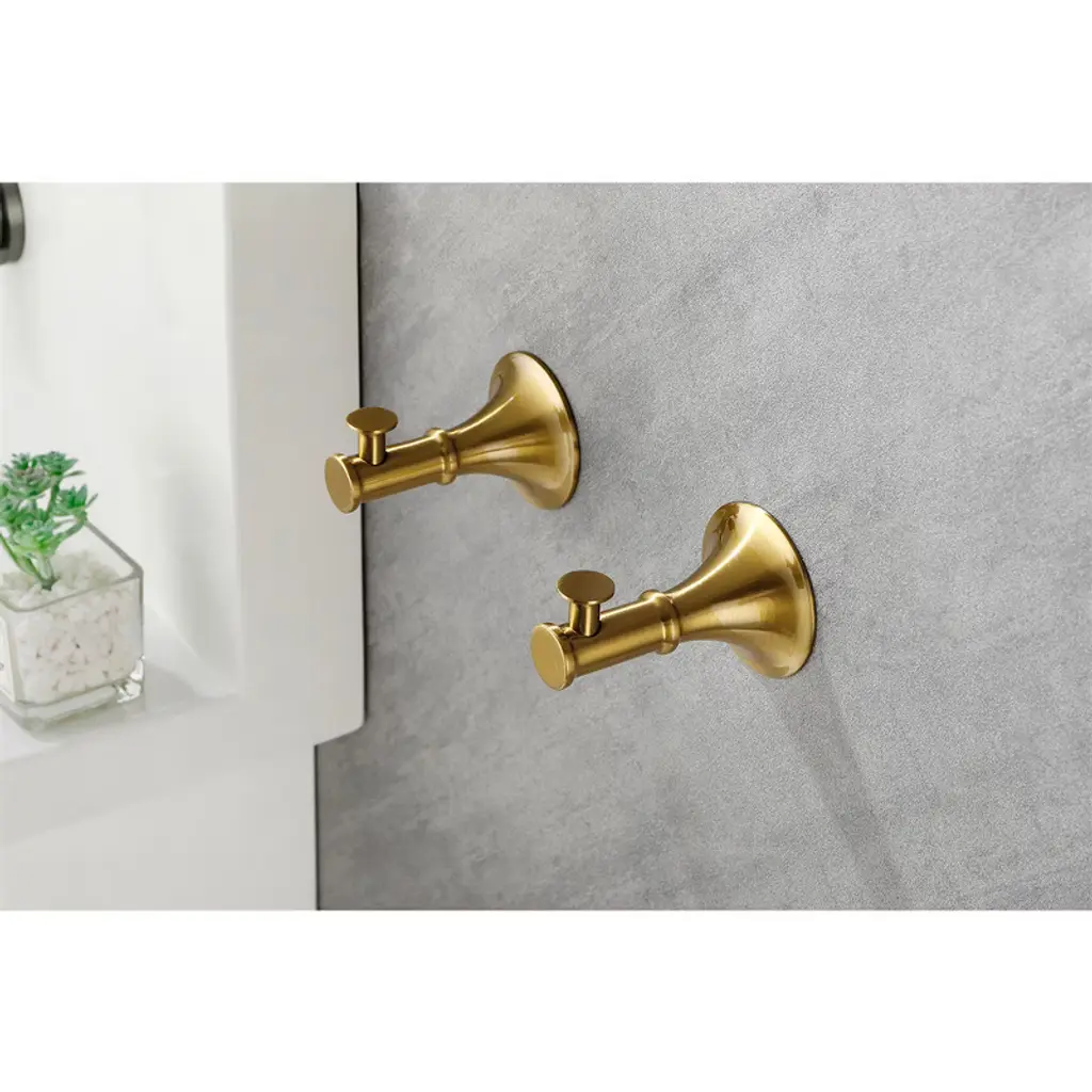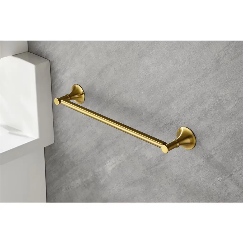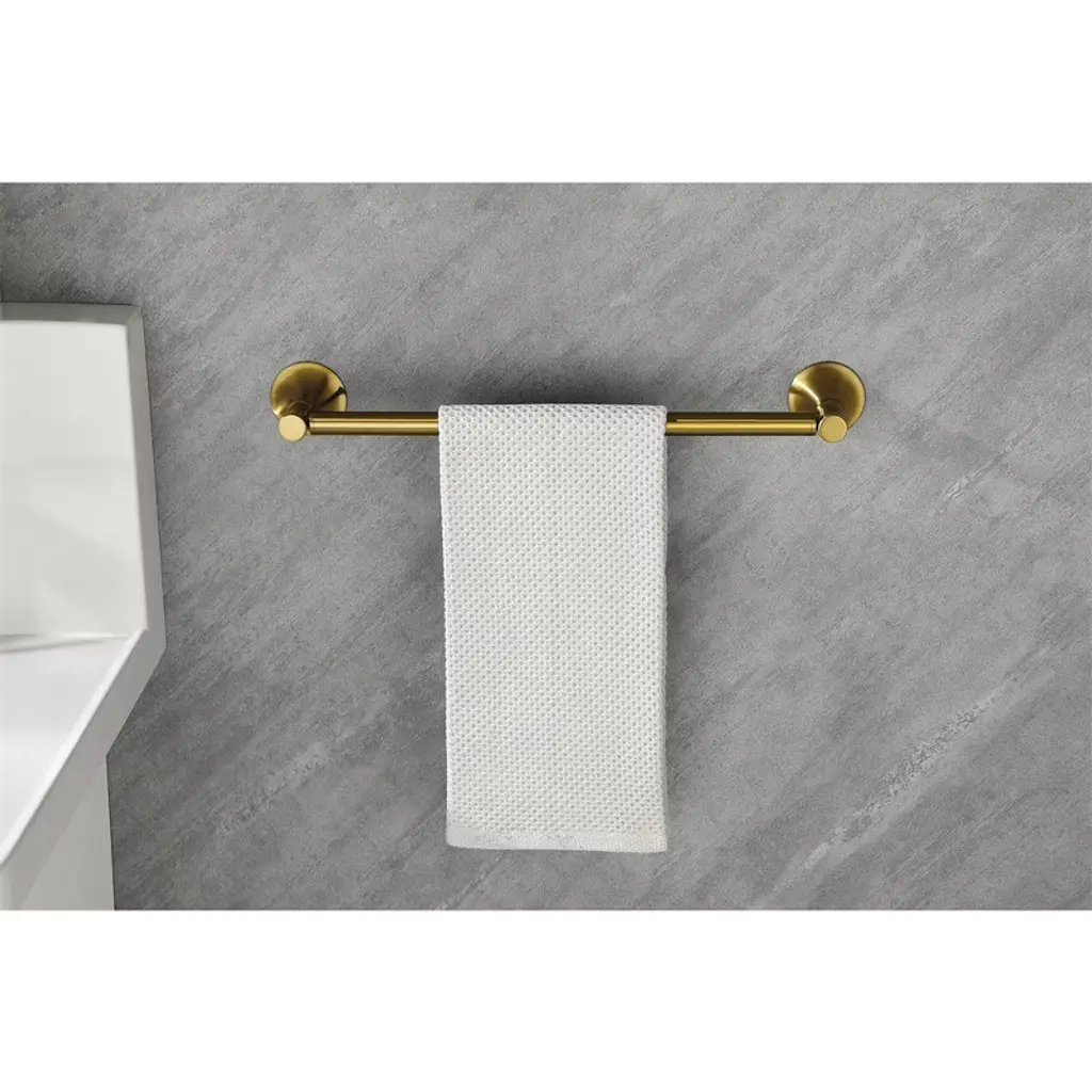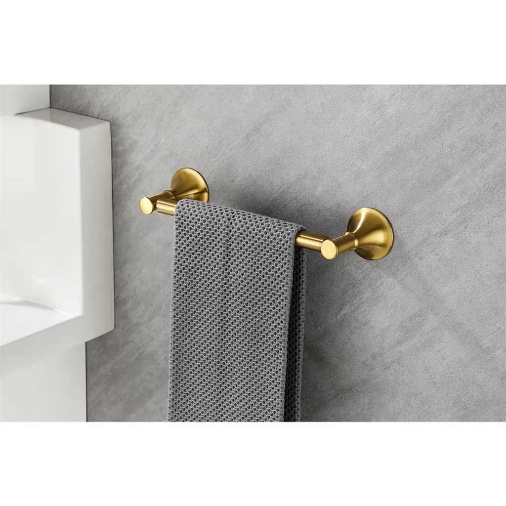 This 6-piece brass towel rack set features a sleek, contemporary design with hidden mounting holes for a seamless look. Its smooth edges ensure safety while adding a sophisticated touch to your bathroom. Perfect for modern homes, it blends effortlessly with any decor, enhancing both functionality and aesthetics in your space.