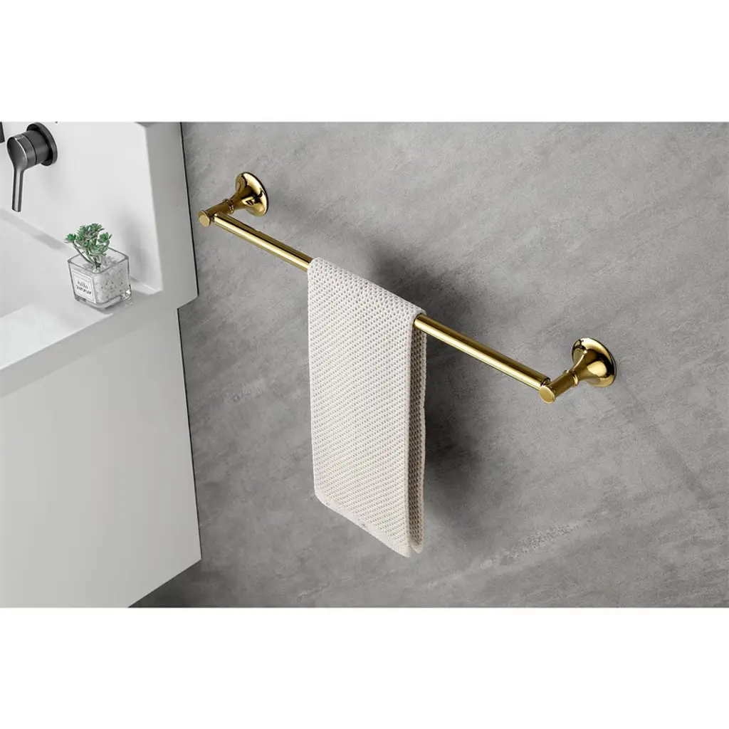 This 6-piece bathroom set features premium brass construction with a polished finish that resists tarnishing. The sturdy metal frame provides reliable support for towels while adding a touch of classic elegance to your space. Its durable build ensures long-lasting performance in humid bathroom environments without corrosion or rust.