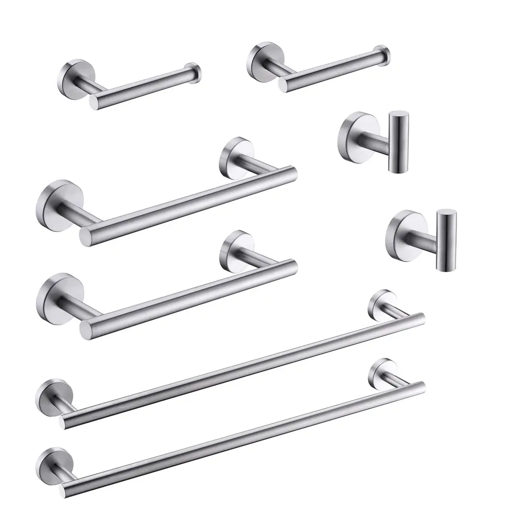 Tramull Silver 6-piece Stainless Steel Bathroom Towel Rack Set, Wall Mounted For Organized Spaces