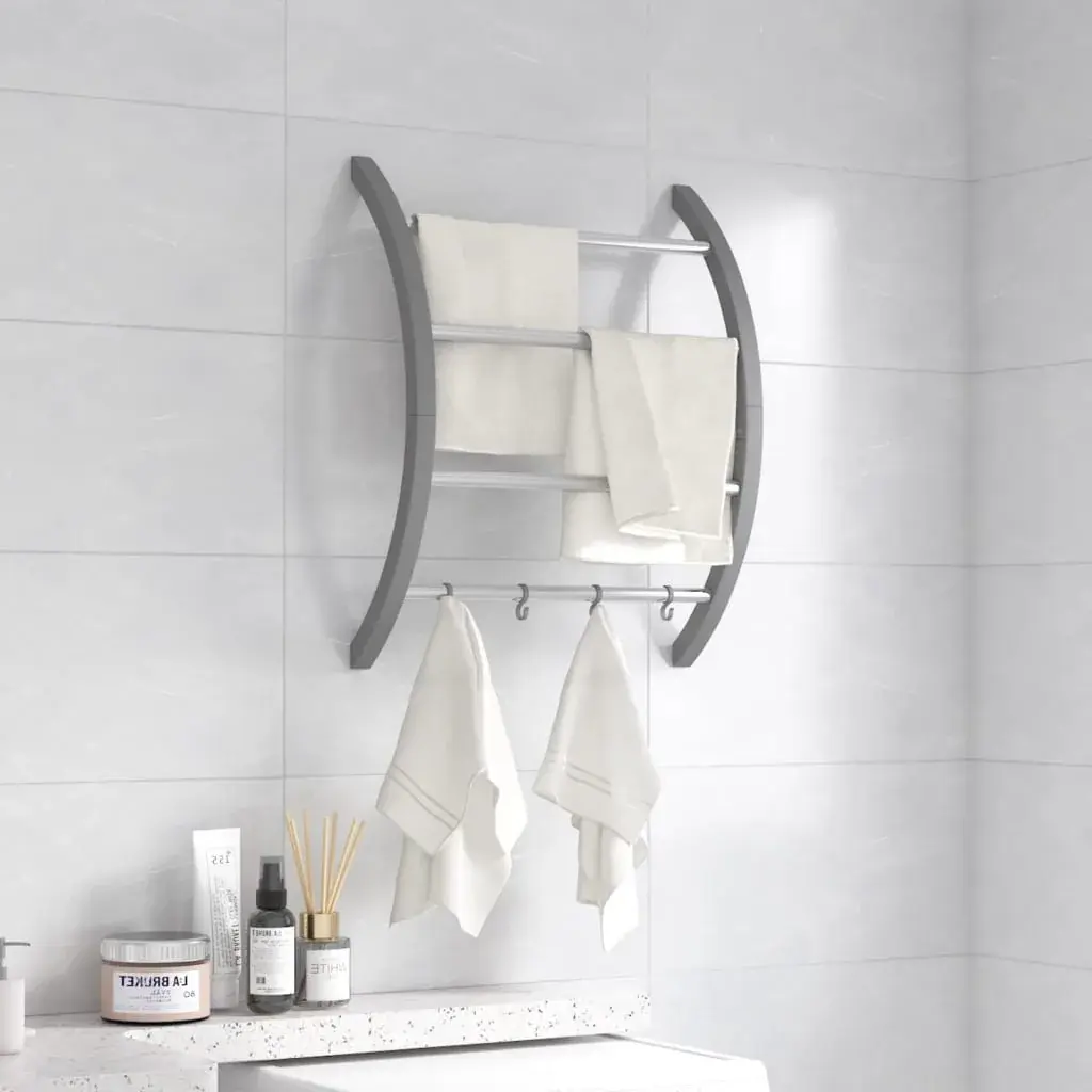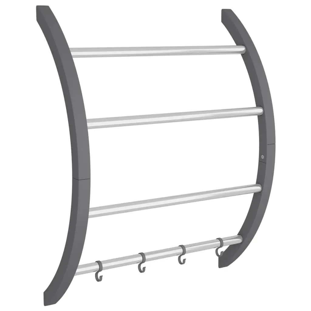 Vidaxl Towel Rack With Hooks Silver 22"x6.3"x28.3" Aluminum - 22" X 6.3" X 28.3" - 22" X 6.3" X 28.3" - Silver